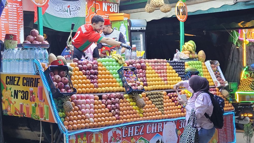 晚上的德吉玛广场比白天更热闹,除了各种摊铺外,广场上很多歌舞和杂耍的。在广场上溜达时要特别注意,尽量不要和那些耍蛇玩猴的对上眼神,不然不好摆脱纠缠。路过一个水果摊位时,说好只要一份10迪拉姆的小杯石榴汁,但摊主却递过来20迪拉姆的一大杯。钱虽然只是一个小数,但这种说话不算数的作派,感觉很不是滋味。不过虽然有这点不合谐的小插曲,总的说来,马拉喀什两天还是一次眼界大开的游历。