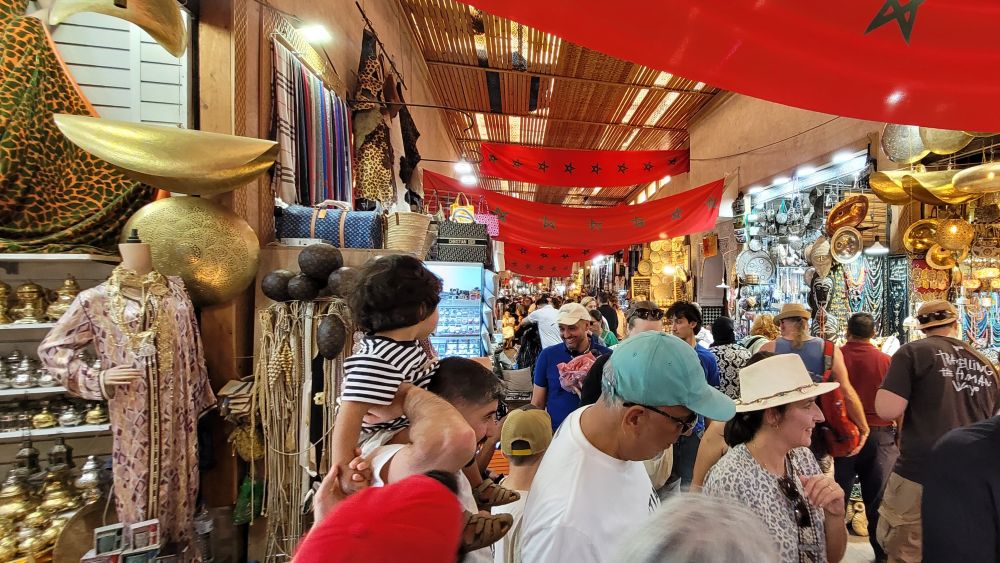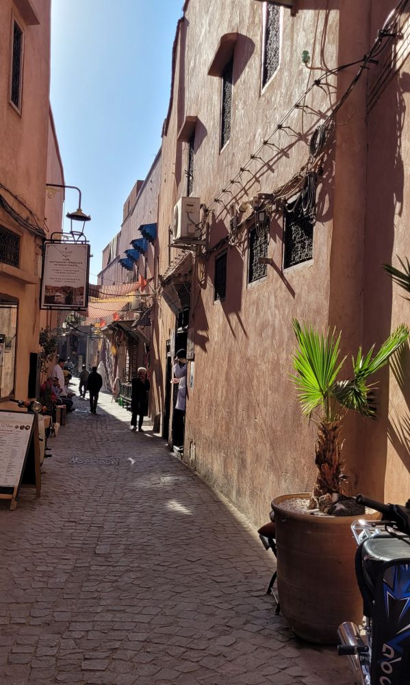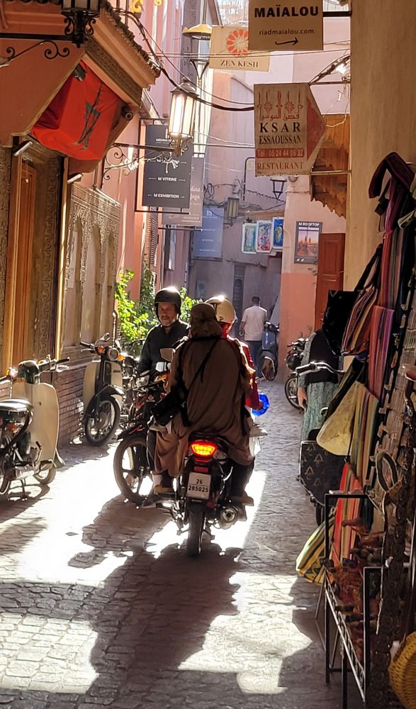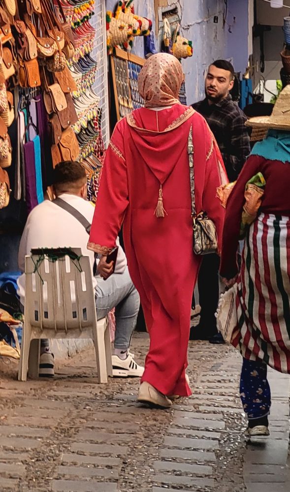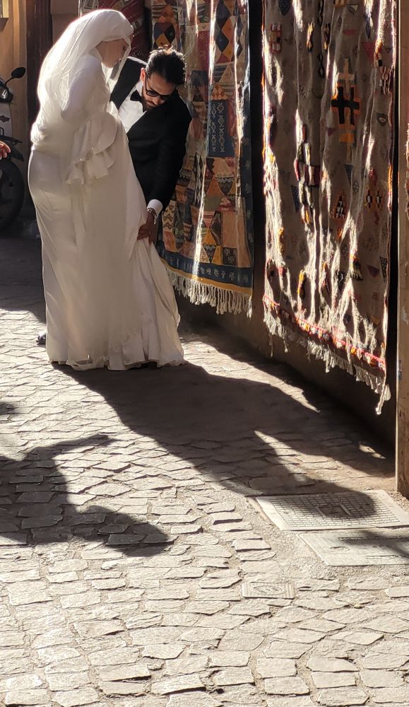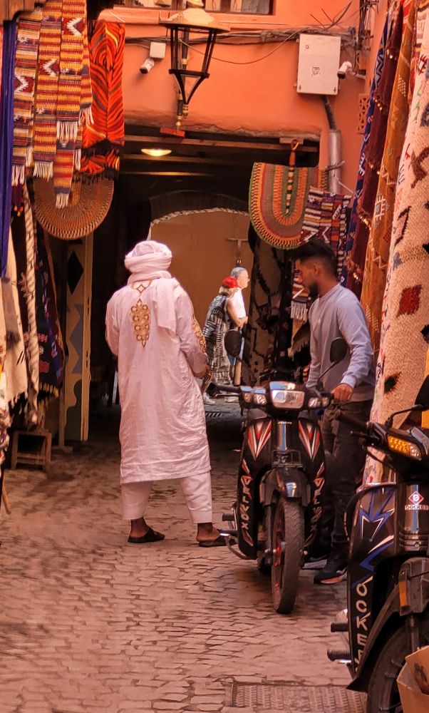 走完一条小街,再走下一条小街。小街小巷就像一千零一夜里面的迷宫,街边的摊铺花样翻新,好像全老城的人都在做生意,挖空心思要掏空来来往往游人的口袋。小街是商品的世界,也是阿拉伯和柏柏尔文化的博物馆。这就是马拉喀什不同于摩洛哥其它城市的迷人之处,既有阿拉伯文化,又有柏柏尔原住民的风情。一次我们正在一条小巷逗留,不期之间身边闪过一位身穿红色柏柏尔长袍的女子,她款款而行,美妙的身影是马拉喀什留给我们最动人的印像。