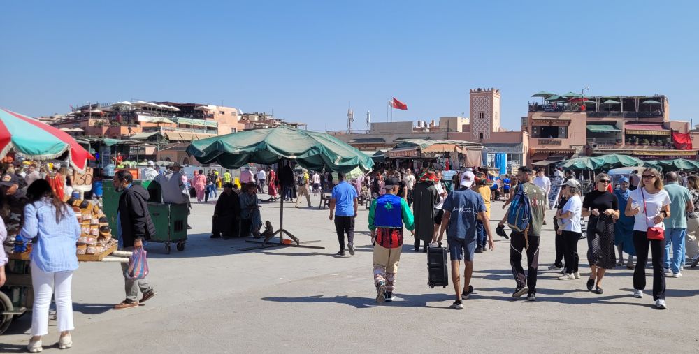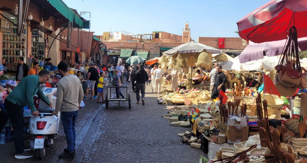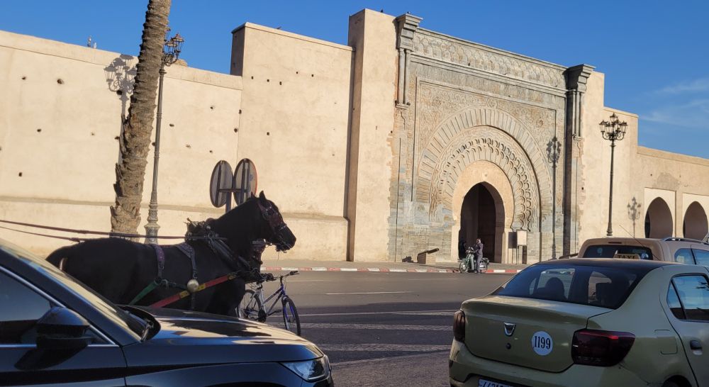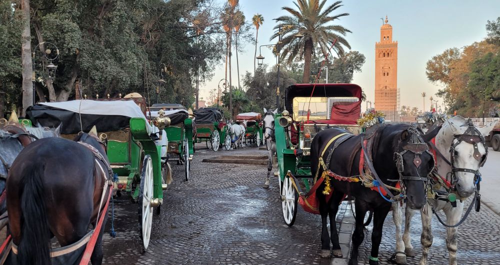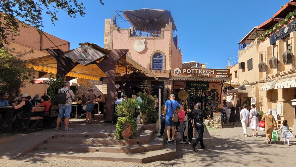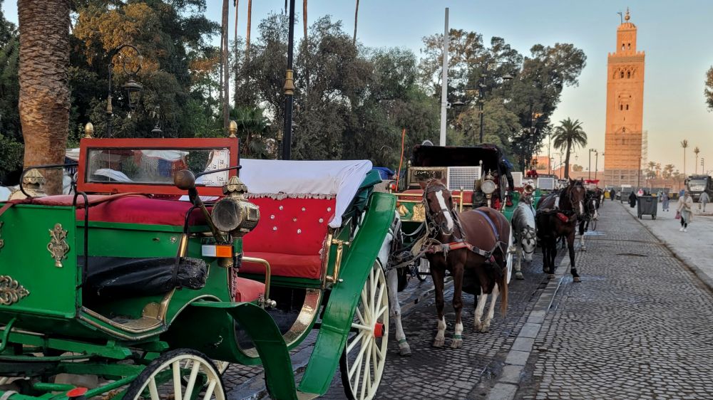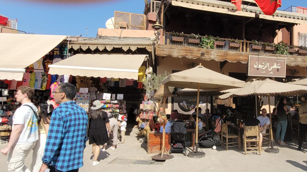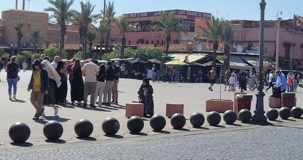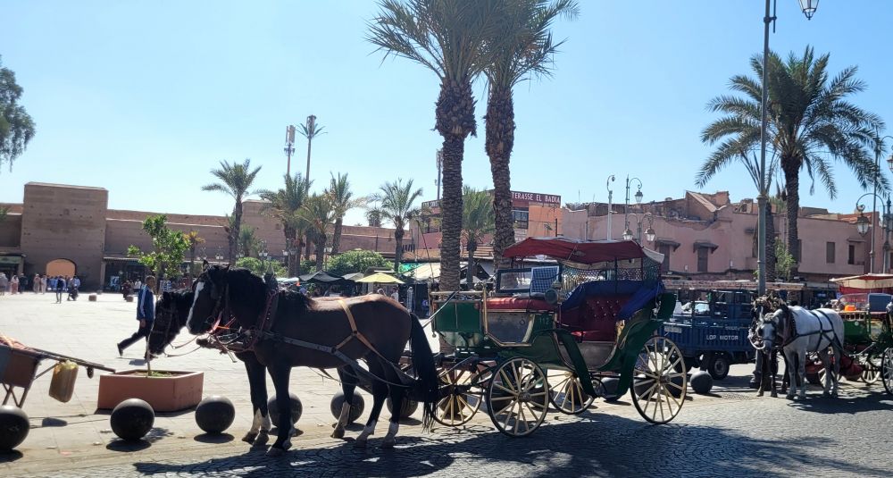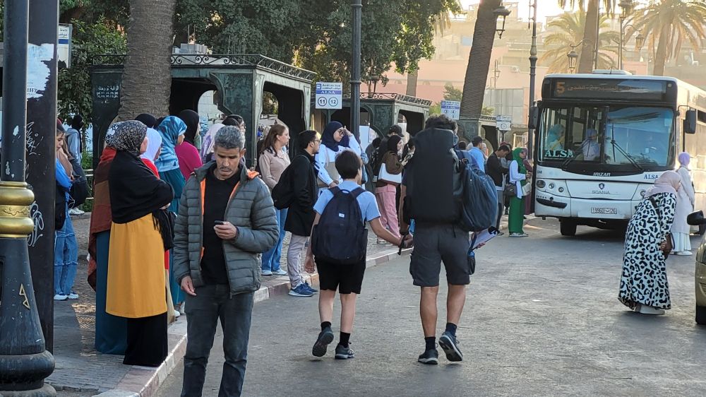 大清真寺和德吉玛广场之间的大街,是老城西边的交通要道,有好几路公交通到这里。前一天我们乘火车到了马拉喀什火车站后,也是坐公交到的广场这边。车站人候车的人不少,很多住老城外的当地人早晨要来老城开店,而头天晚上在老城旅店当班也要坐车回家,老城早晨此时就数车站最忙。