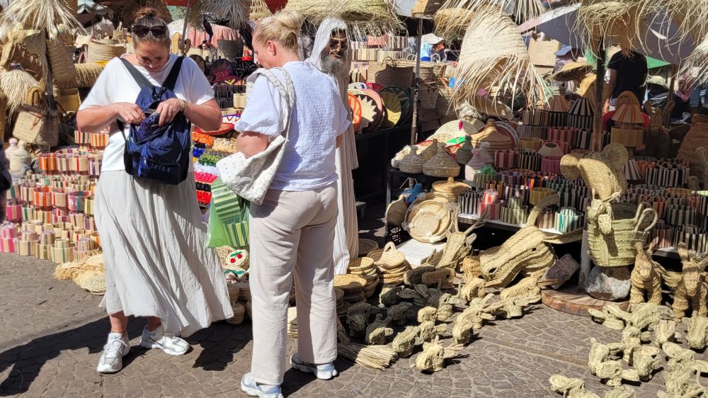 古城里面不远就有一个小广场,也是各种货品的小市场。其中一个卖木品和编织品,有竹编的,也有芦苇编的,既可以当用具,也是一种摆设。那些芦苇编织的驴子和仙人掌很有当地的风味,只可惜后面我们还要去好几个地方,再好看也没法带。
