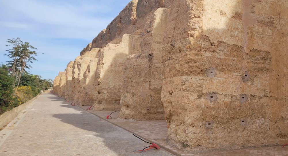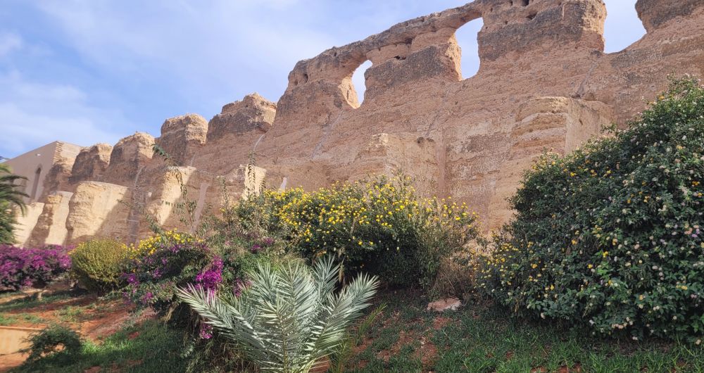穆莱伊斯梅尔是一个好大喜功的家伙,他很喜欢马,其爱马有500匹之多,为此他专门兴建了一个马厩,同时旁边还了一个粮仓。粮仓保存完好,但马厩因为是土墙,只剩下了断墙残壁。土墙是黄泥做的,而且特別厚实,北非炽热的阳光下颇有一种独特的岁月之美,所以成了梅克内斯的一景。可惜我们去的时候正值维修,据说还有半年才开放,所以我们只看到了外观。