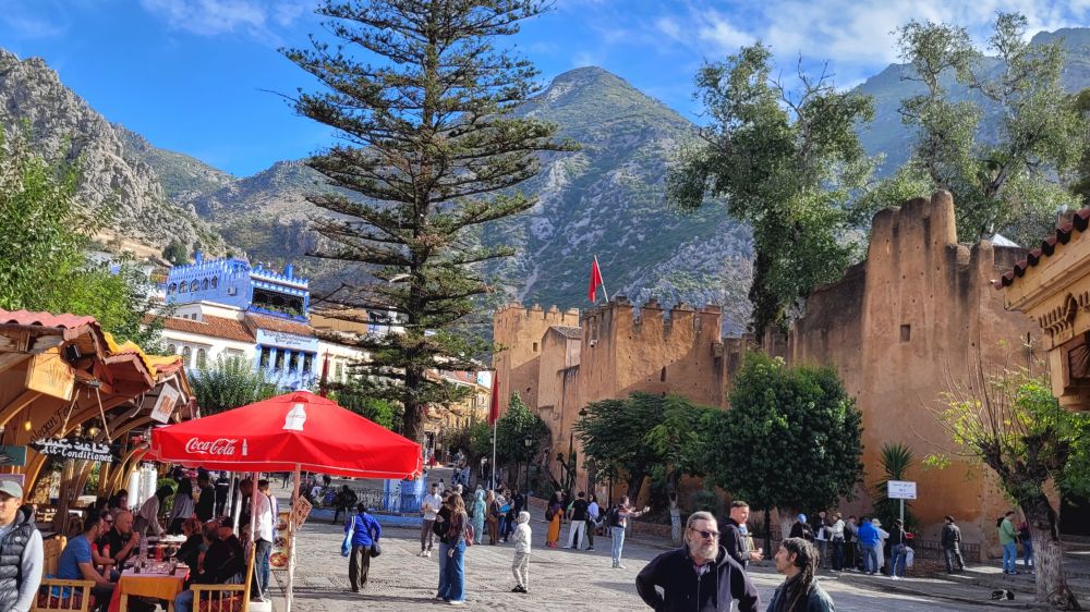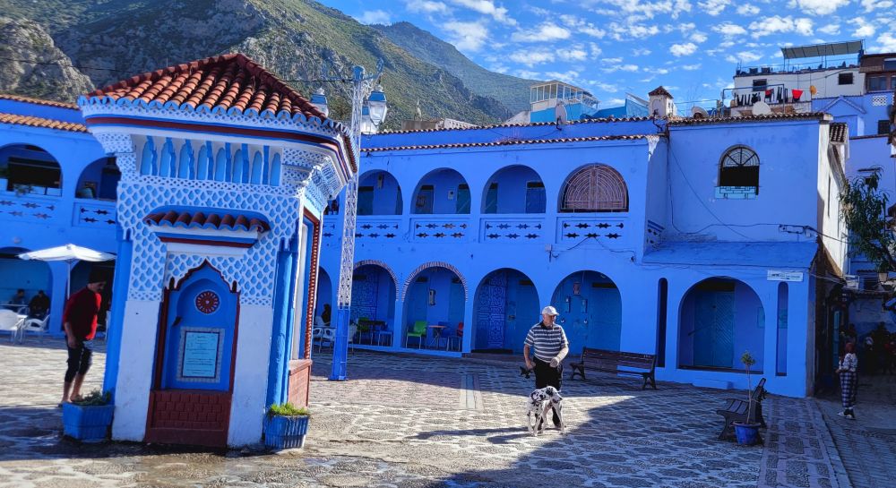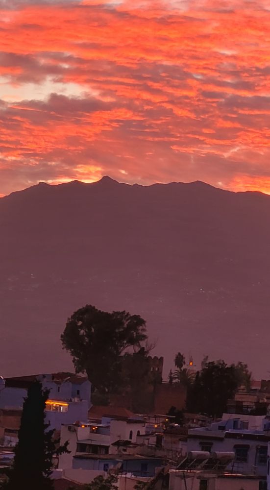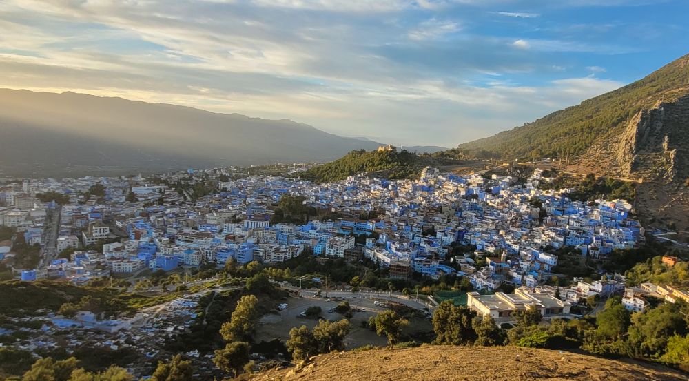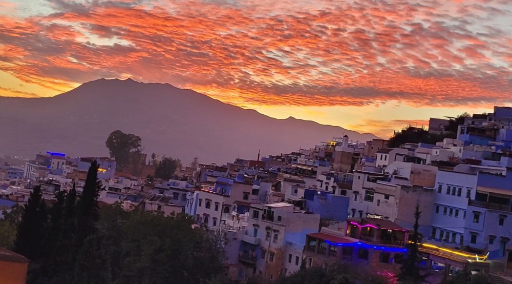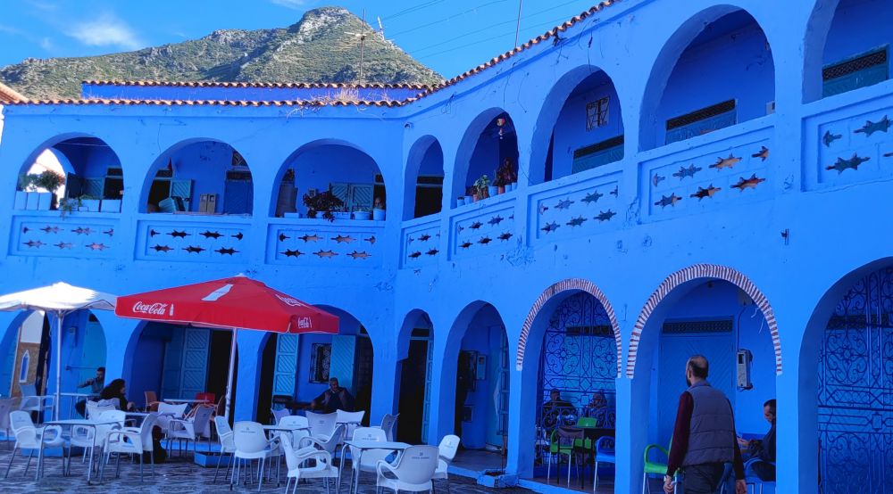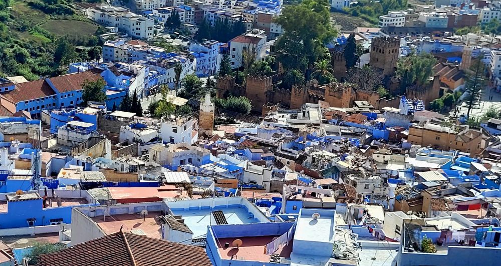 菲斯北边几百公里有一座蓝色的山城叫舍夫萨万 Chefchaouen,这几年成了网红城市,所以我们也打算去见识见识。从菲斯到舍夫萨万不通铁路,只能坐公交或跟团前往。无论哪种方式,单程都得三四小时。如果跟团的一日游,在小城只有三小时左右的停留时间。我们觉得太赶,所以决定在古城住两晚,这样有一整个白天游览。