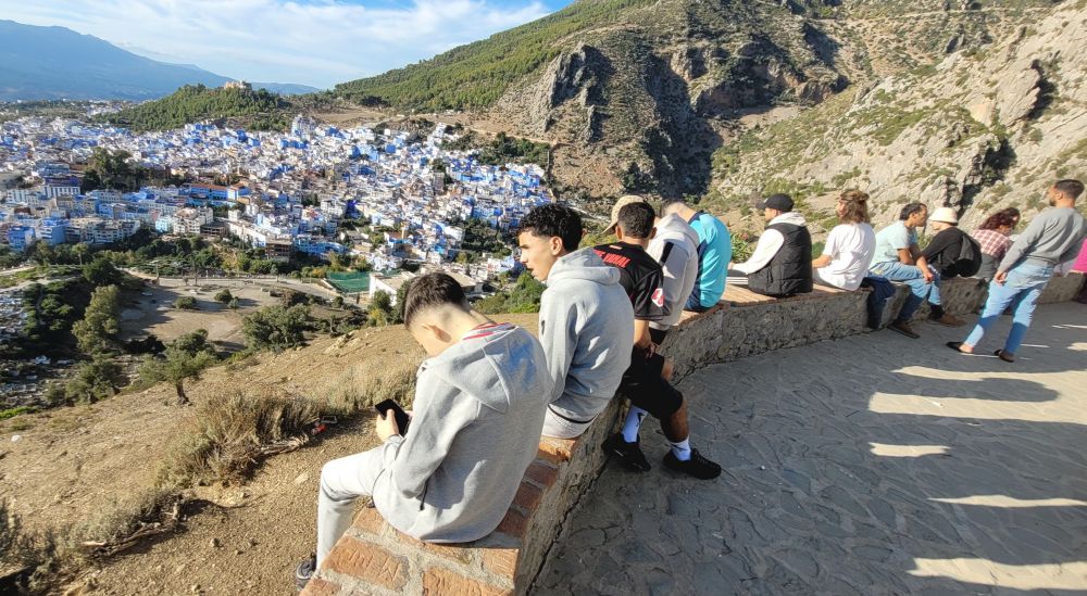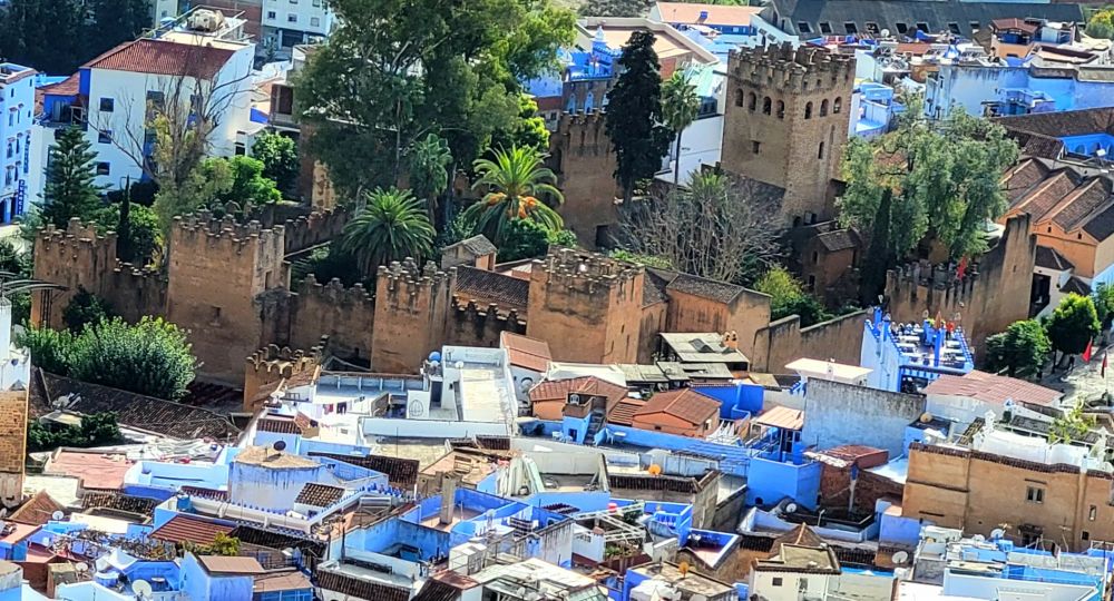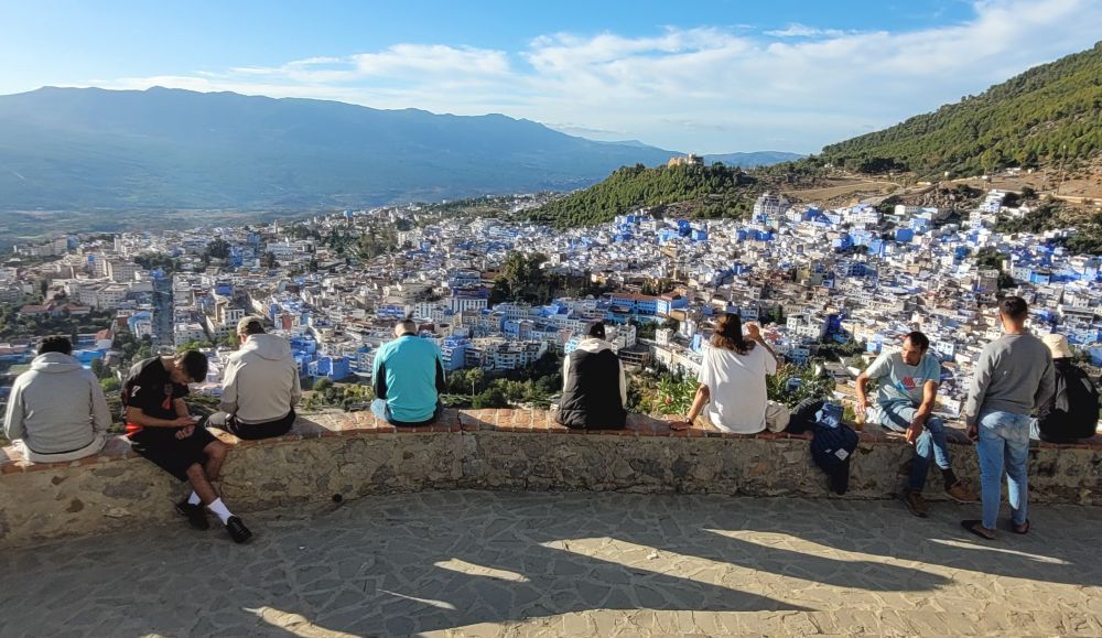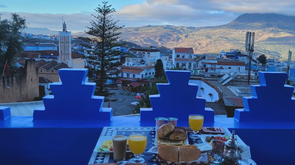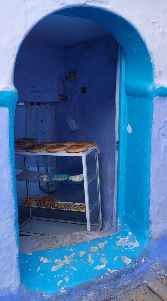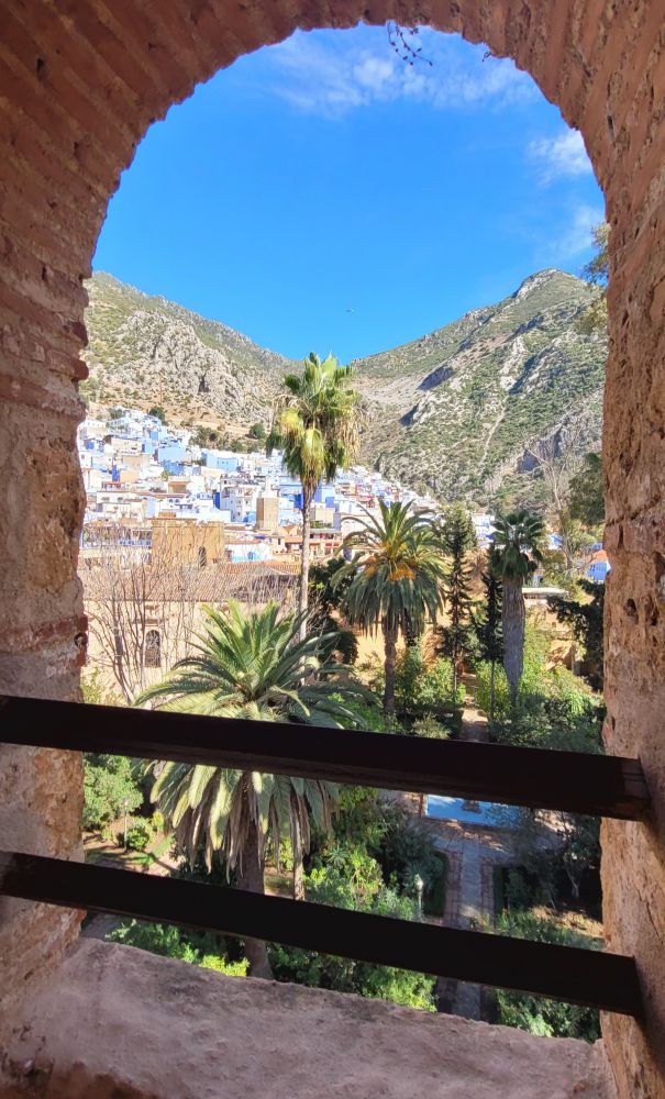 菲斯北边几百公里有一座蓝色的山城叫舍夫萨万 Chefchaouen,这几年成了网红城市,所以我们也打算去见识见识。从菲斯到舍夫萨万不通铁路,只能坐公交或跟团前往。无论哪种方式,单程都得三四小时。如果跟团的一日游,在小城只有三小时左右的停留时间。我们觉得太赶,所以决定在古城住两晚,这样有一整个白天游览。