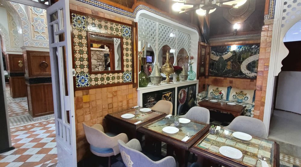 酒店的装饰风格很独特,应该说比较老套,但又说不清楚是什么风格,好像既有西萄的风味又具有摩洛哥的传统,不过拍出来特別上镜。当初选择这家酒店,除了位置好外,网上的照片看起来也颇有特色。但实地入住后不知咋地老觉得有些别扭,感觉没有老酒店常有的那种温馨的氛围。好在我们只住一晚,次日就要去下一站卡萨布兰卡。