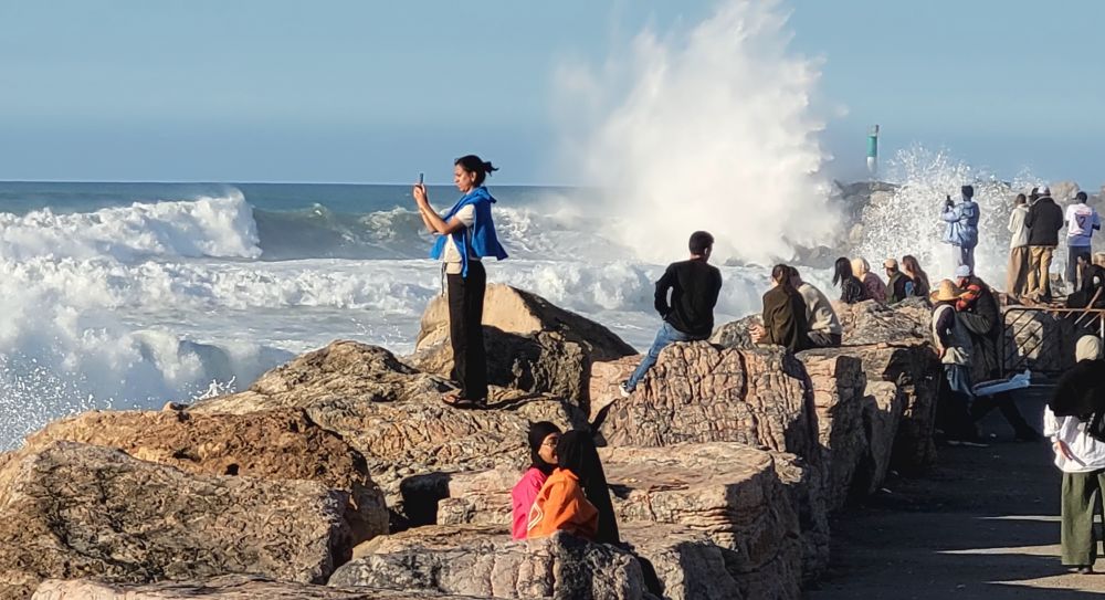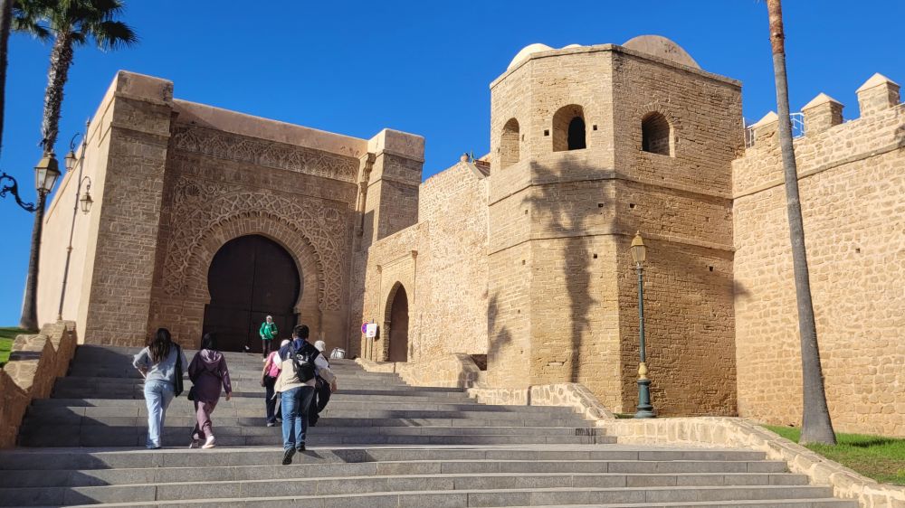 回头我们才去了乌达亚斯古城堡。城堡是一个古迹,远在12世纪的穆拉比特王朝,柏柏人穆斯林就在布格雷格雷河口的这边高坡上修建了城堡,防御敌对势力的进攻。15世纪直布罗陀海峡的西班牙被基督教光复后,原来居住在西班牙的摩尔人逃难到摩洛哥,一部分人在乌达亚斯城堡落脚,同时也带来了西班牙摩尔人的民居风格。乌达亚斯城堡入口就是很好的打卡之点,除了城堡本身就很上镜外,还可以远眺老的哈桑塔和新的穆哈默德六世塔。