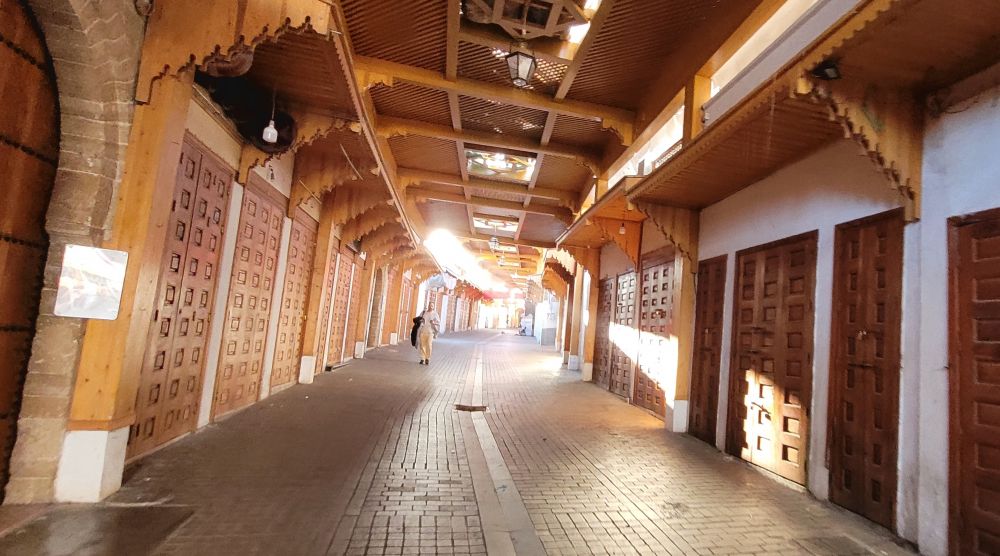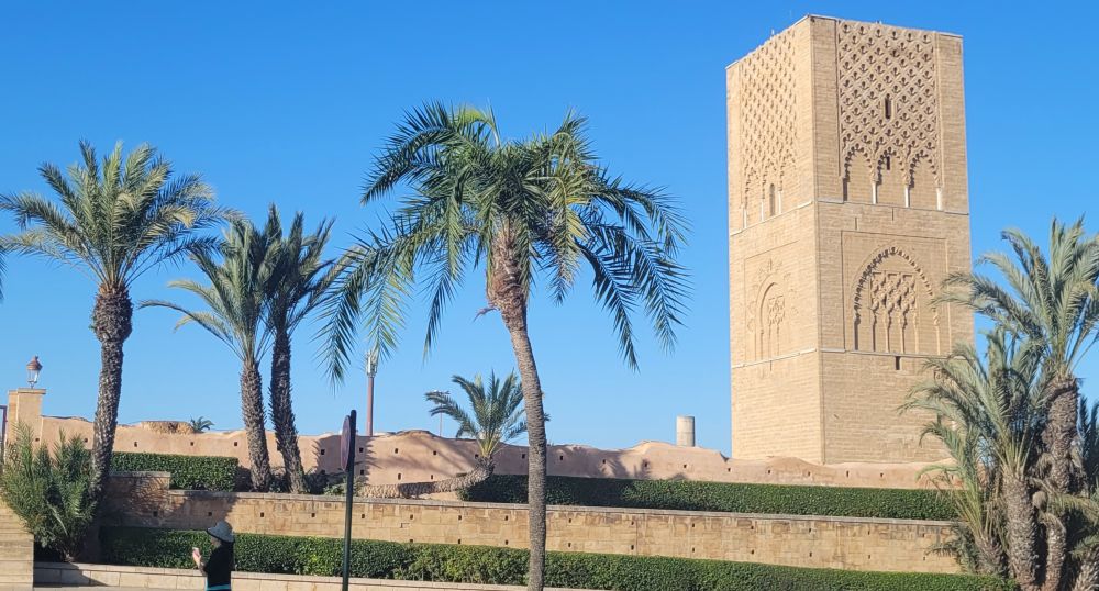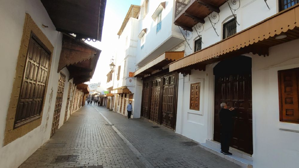早餐后我们没多耽搁,动身直接去拉巴特最著名的景点哈桑塔及就在旁边的穆哈默德五世纪念堂。两者和我们酒店邻近的乌达亚斯堡都位于拉巴斯城边的布格雷格雷河南岸,相距也只有两公里左右,中间隔着拉巴特的老城。我们决定步行过去,这样可以同时逛一逛老城。当时时辰还早,很多店铺还沒开门。那些店铺的门好像是统一设计的,不杂乱,但不如马拉喀什有特色。