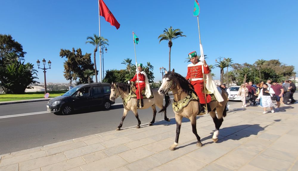 哈桑塔所在的位置是布格雷格雷河岸上的一个高地,坡上是一片花园,下面就是拉巴特的母亲河布格雷格雷河。哈桑塔遗址有两个入口,一个面向城里,而我们要去是外围公园入口。我们到达时正值卫兵换岗,入口有不少人围在那里都举着手机拍照。人手一只手机的年代,不管有啥动静,都会有手机记录。