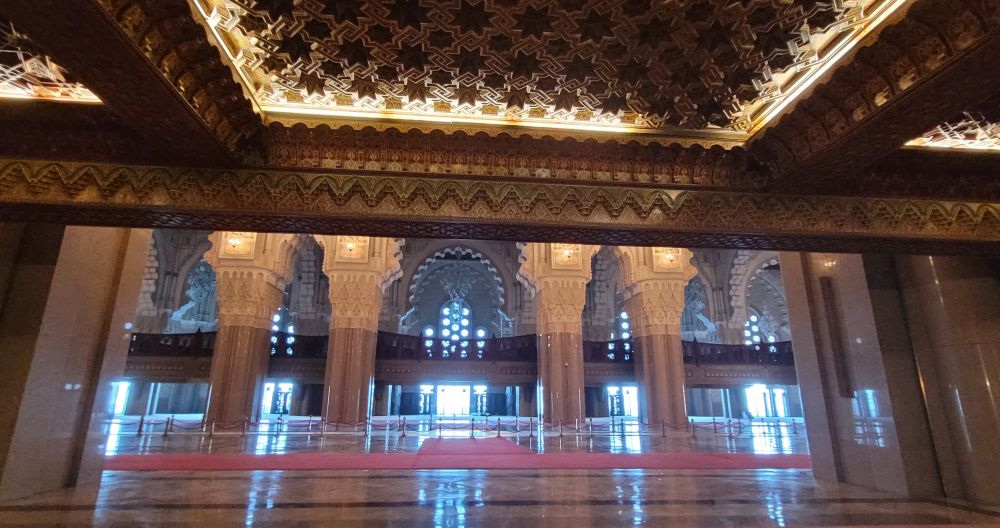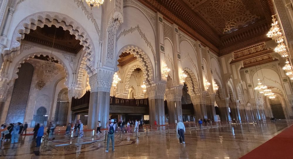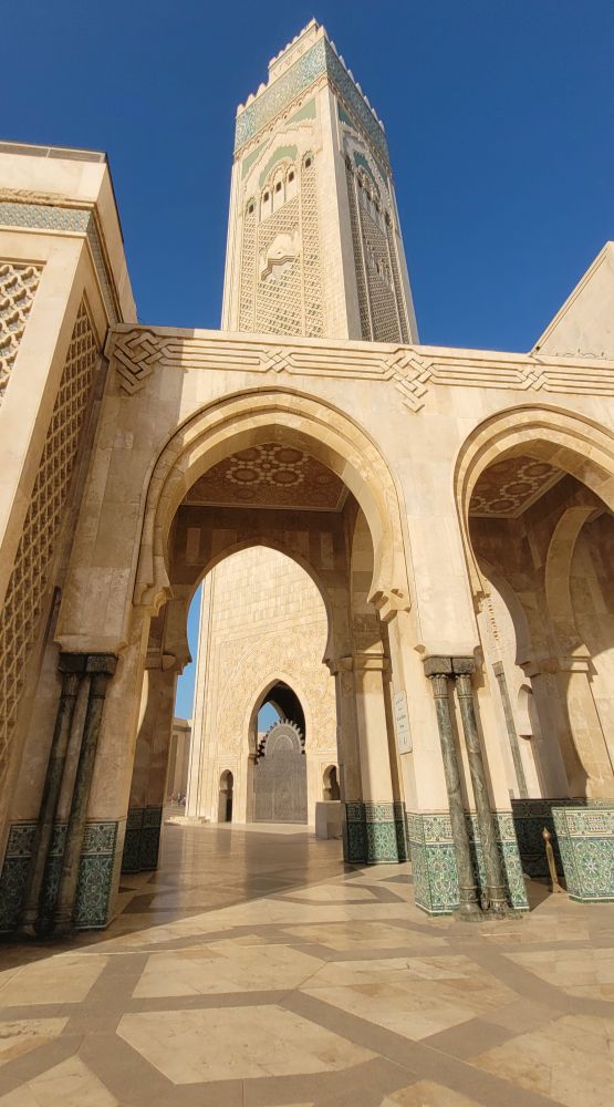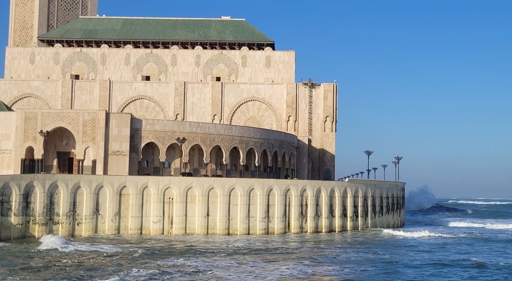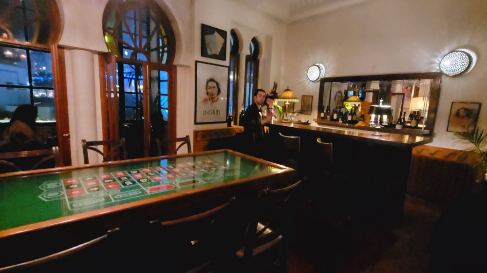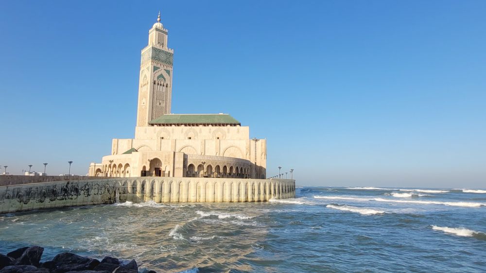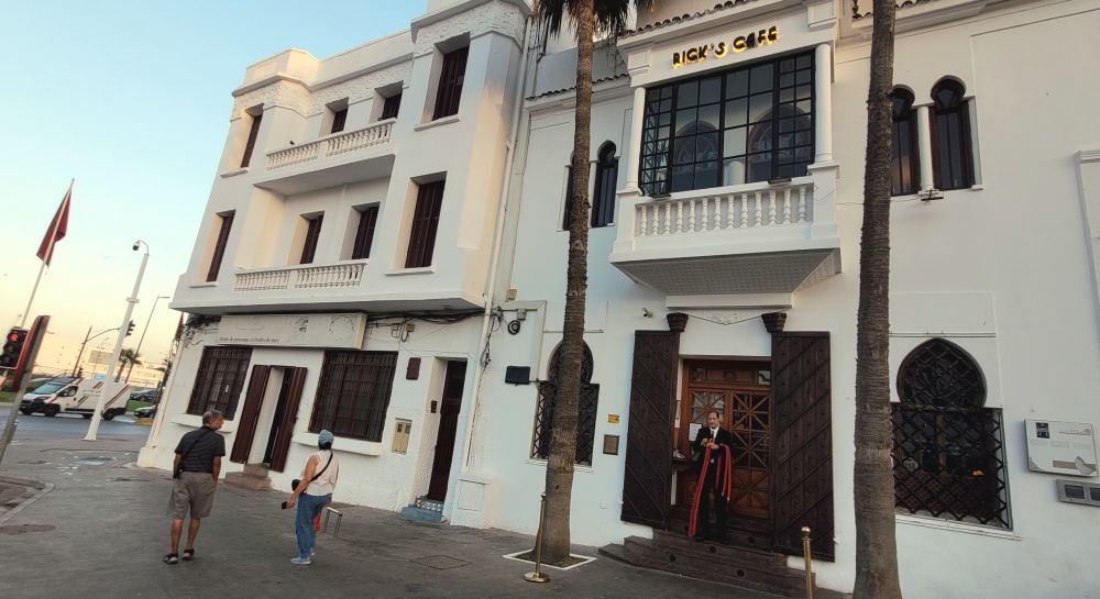 卡萨因为是一个工商城市,市内的古迹不多。虽然也有一个老城,但相比于之前的马拉喀什和菲斯要逊色很多。我们想去的只有两处,一是建于1993年规模为世界第三大的哈桑二世清真寺,另一处是里克咖啡吧Rick‘s Cafe。尽管影片中的里克咖啡吧真实中并不存在,只是好莱坞片场的一个布景,而卡萨现在的里克咖啡吧其实只是美国一位卡萨布兰卡影迷克里格的复古之作,但对我们俩这种伪影迷来说只要是美好的,梦境也无所谓。