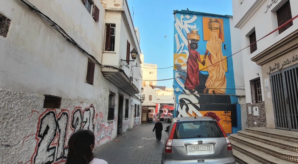下午我们只在酒店附近转了转,那一片是卡萨布兰卡的商业区,大街两边是银行,商业大店以及各种酒店。建筑类似国內八十年代,但环境更整洁,地面也干干净净的。主要的不足就是交通混乱,大车小车挤成一团,基本上是见缝插针,夺路而逃。好在大家速度快不起来,稍有点磕磕碰碰,也伤不到车里面的人。
