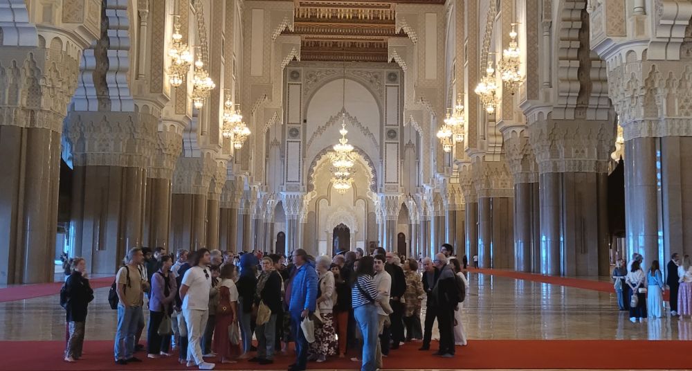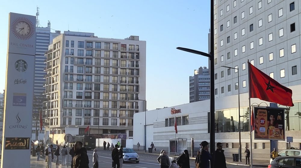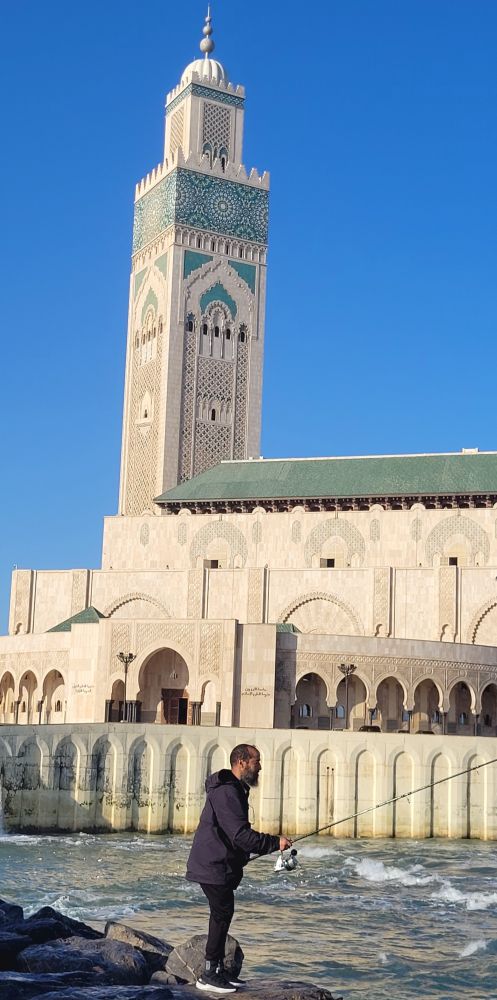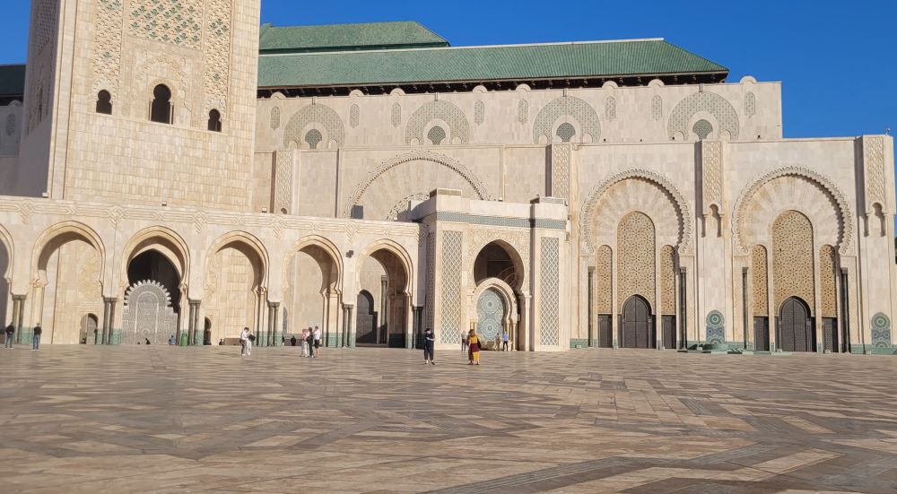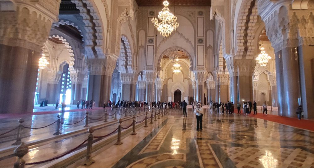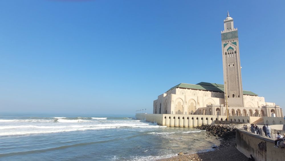 哈桑二世清真寺在海边,里克咖啡吧也靠近海,而我们入住的酒店就在卡萨海港旁边的金融区,所以都在同一个区域。其实三地都在老城附近,酒店在老城之南,咖啡吧在以东,清真寺在北边。早餐后我们立即动身,先去最北海边的哈桑二世清真寺,那里大,需要的时间多。途中途过的海港旁边也有一个火车站,虽然规模不如城中的中心车站,但当时正值上班时段,出站的人流状如潮水,场面像极了纽约和多伦多的中央车站。