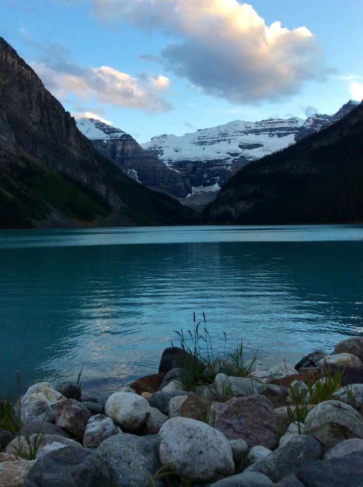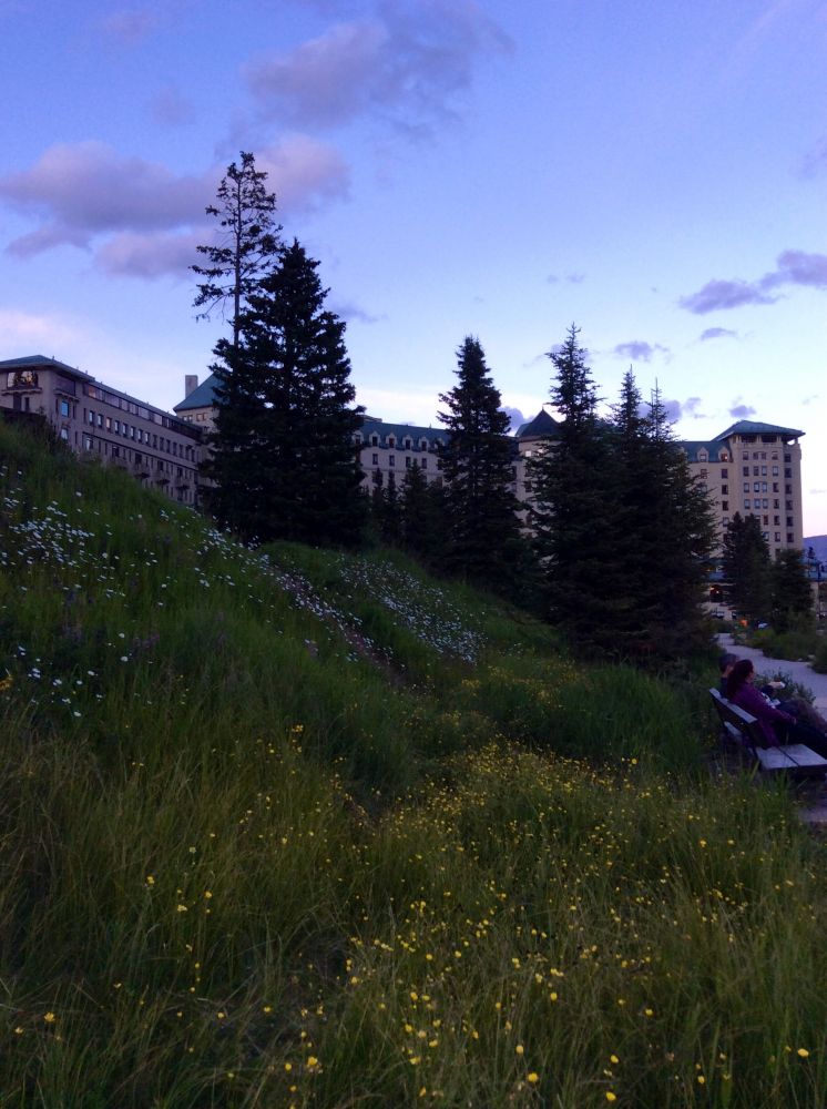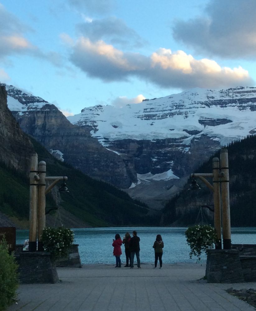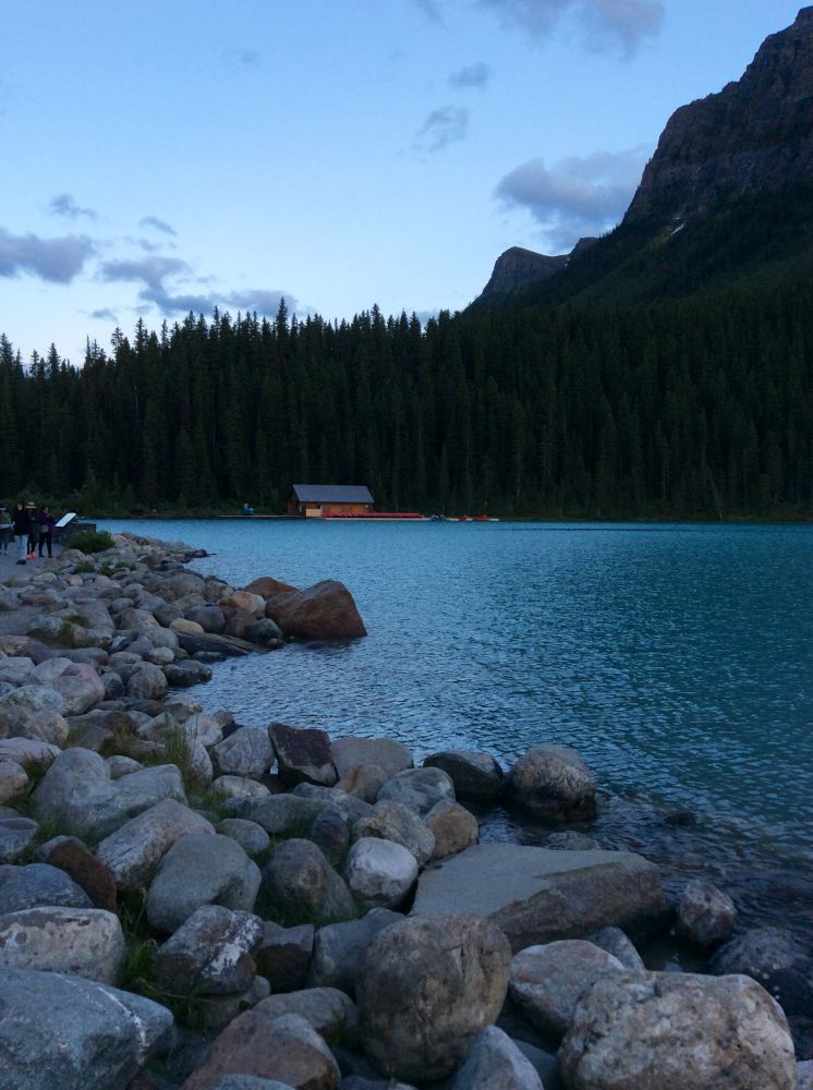 洛矶山脉游行程紧凑,游完其他景点回到露易丝湖城堡酒店已是傍晚八点半了。不想错失在露易丝湖的每一寸光阴,拿起相机冲出酒店。太阳收起最后一缕柔光,迷人的黄昏美丽而明亮,露易丝湖的旖旎风光更显曼妙多姿。