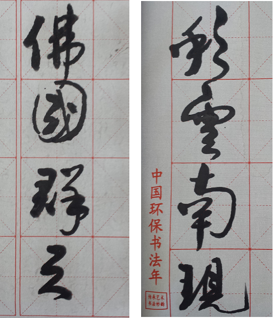 图五。水写毛笔字。 水写字的缺点是干的快。 左图已经快干了,可用相机拍照后保存下来,用于学习改进。