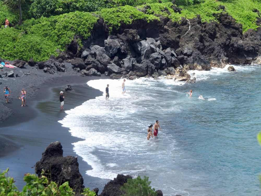 回到船上还不到九点,赶快换装吃早餐,因为还要去赶十点钟的茂宜岛西海滩休闲游。这个是真正的休闲游。大巴士把我们一群人拉到一个当地居民生活购物的海滩就放羊了。到下午三点来接回船。我们逛了一会儿街,然后就到沙滩戏水了。海水很暖,虽然沙滩很缓,但波浪很大,而且浪声回响也很大。我站在不到腿根深的水中还被浪冲了个滚儿。挺好玩儿的。