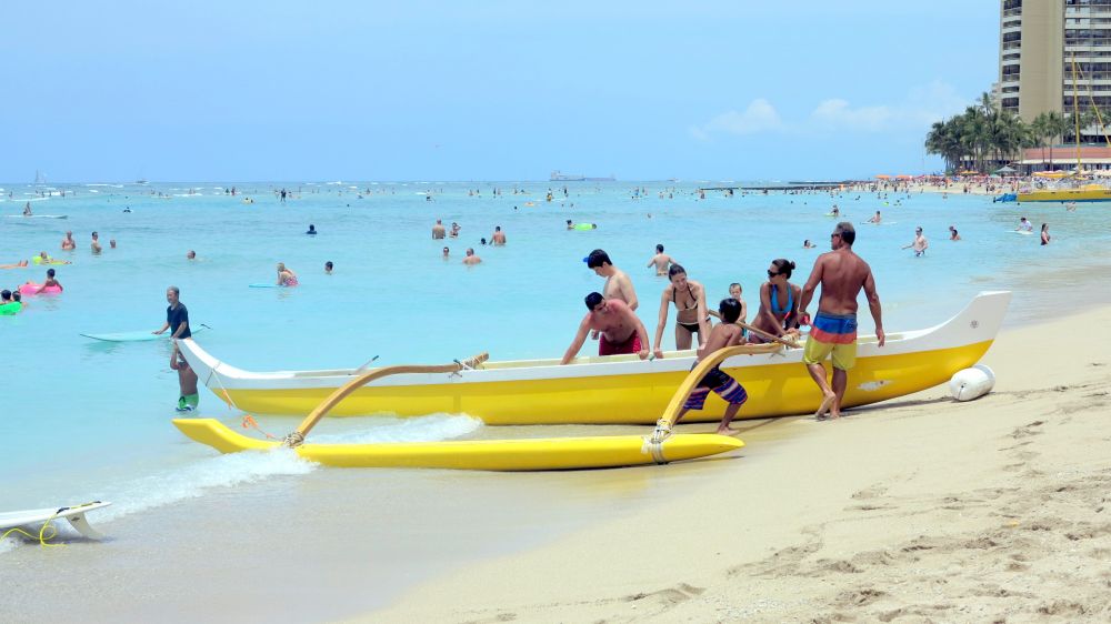 因为登船的时间是中午以后,所以早上收拾好行李寄存在酒店就徒步到檀香山最著名的威基基海滩先睹为快。