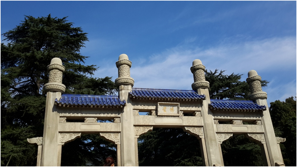 打车直奔中山陵,这个中国修建的最后一个陵寝,自然是气魄非凡,中规中矩,并没有给我留下很特别的印象。老妈虽然腿脚不好,也和我们一起爬上了那392级台阶。此时头上是蓝天白云,但是从中山陵的最高点俯瞰南京城,却是雾中看城,一片朦胧。