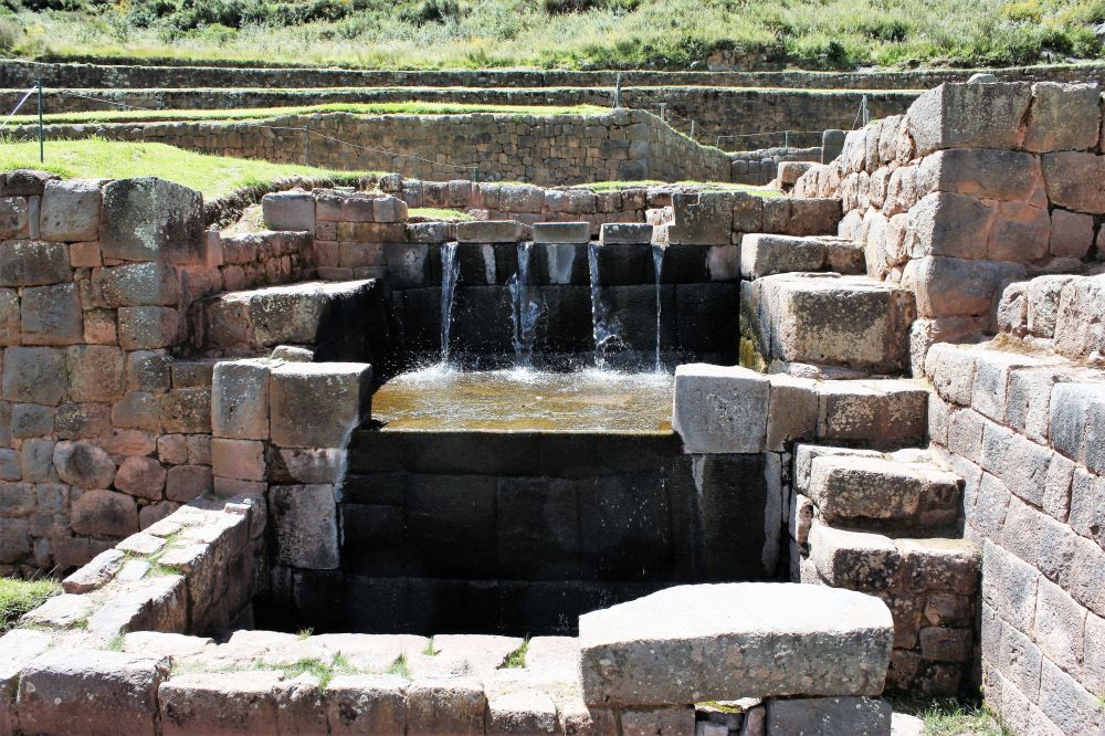 Tipon是印加人的水利和灌溉工程杰作。因为曾是印加皇族领地,整个景点修建的相当精致优雅,像个大花园。包括壮阔的山峦,宽阔高大的梯田,地上和地下的引水沟渠,和美妙的小瀑布。两股山泉被印加人摆布的服服帖帖,人为与自然的优美和谐。作为农业试验田,Moray的梯田重在实验温度和海拔对农作物的影响,而Tipon的梯田重在测试水和湿度的作用。这里80%左右的引水系统至今还在使用。