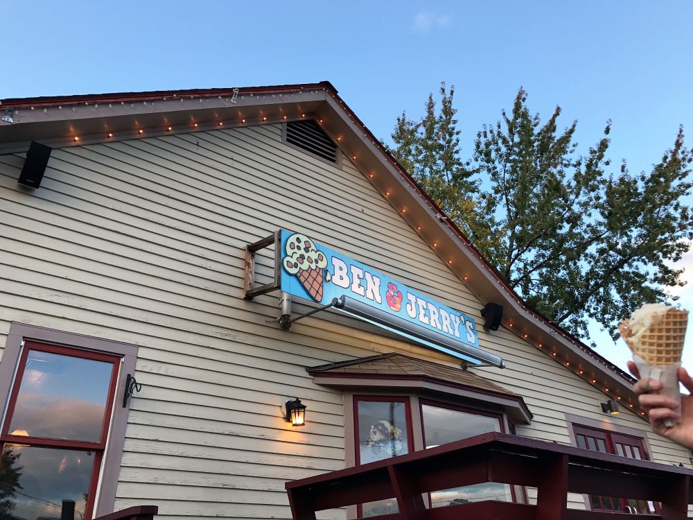 我们住在North Conway,去镇子上的 Ben & Jerry's。去年赏秋季节去了他家在佛蒙特州位于Waterbury的工厂店,才开始喜欢的。据说他家冰淇淋的口味命名颇有创意。我正和女儿说,好像没有我想吃的香蕉味的。她说,有哦,就是Monkey Chunky哦。怎么叫这么个名字?因为猴子喜欢吃香蕉嘛! 哈哈,这名字也太有趣了吧,如果不是女儿陪着,我可能一辈子都不会去点这个口味。