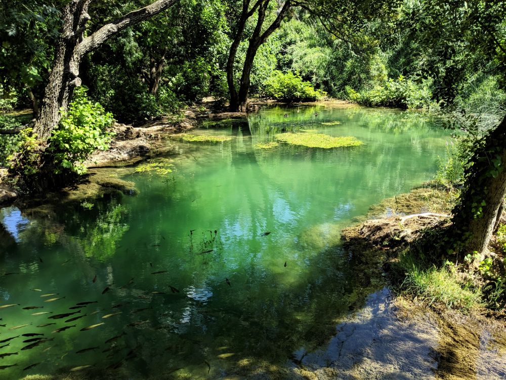Krka NP是1985年建立的国家公园,依河而建,延绵Krka River 73公里。公园有5个入口,由南向北依次是:Skradin(紧邻亚得里亚海),Lozovac(停车场免费), Roski Slap, Krka Monastery和Burnum(独特的古罗马剧场)。我们把车子停在Skradin的付费停车场,其实是前后转了两圈,才确认这个貌似私营停车场确实是公园的。先去游客中心买票,票价含shuttle bus和ferry,拿地图并稍作问询。今天的游览计划是乘渡船往返,去四公里外,看这个公园最著名的瀑布Skradinski Buk,总共花了3个多小时 。