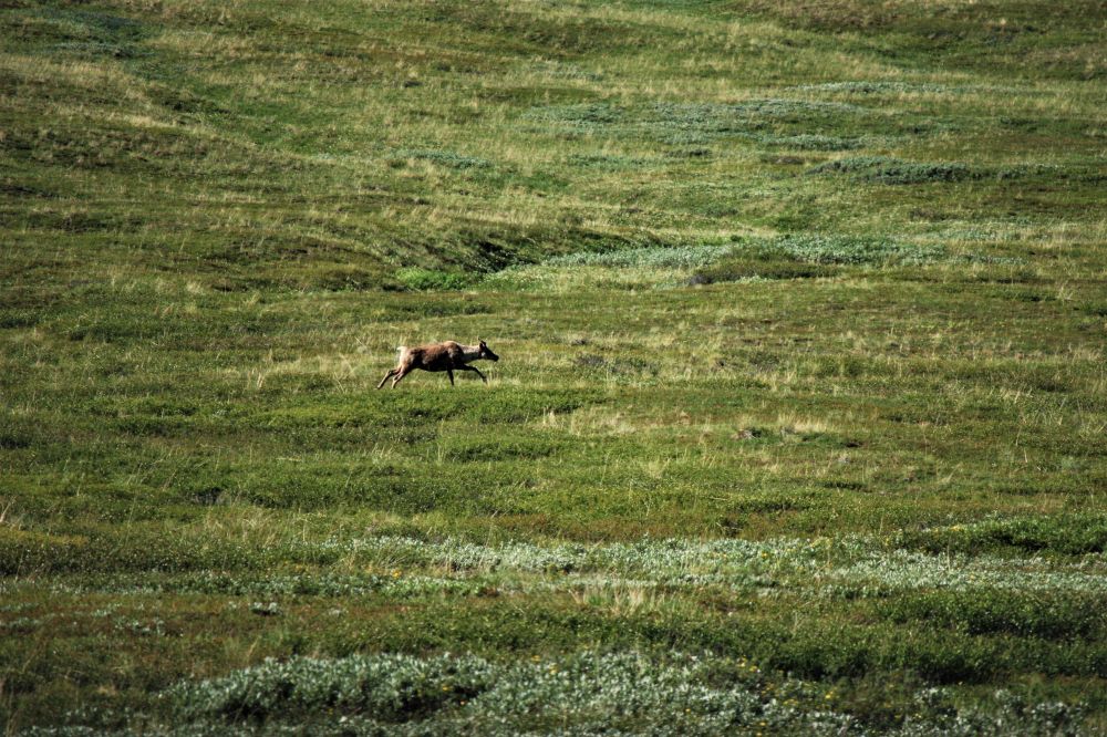 而另一只Caribou,沿着我们的车平行奔跑,展示速度与激情。