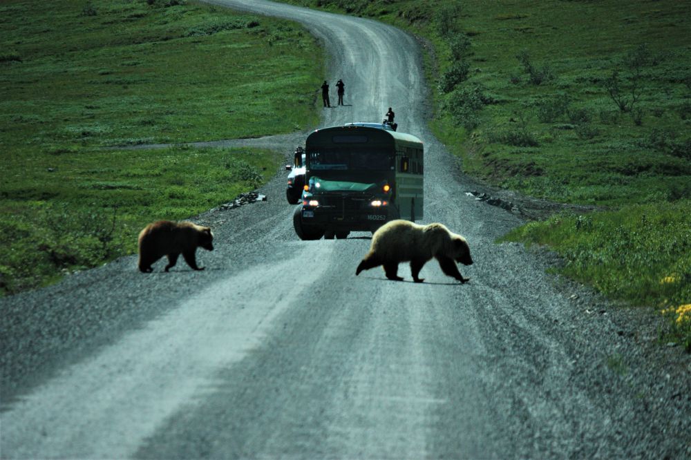 我们没做好功课,坐在了右边座位,Denali山峰在车的左边。