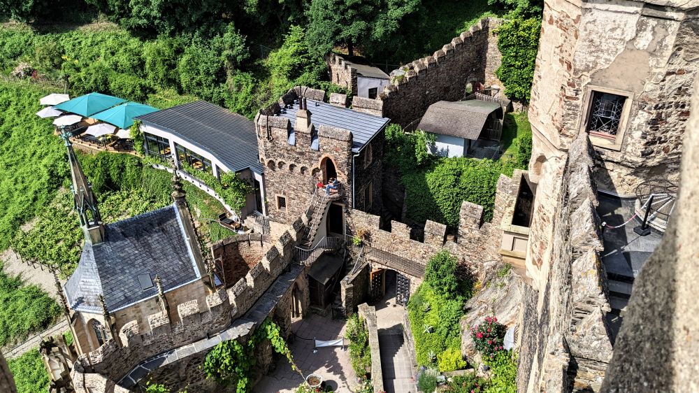 --- Rheinstein Castle,距离美因茨半小时车程,很值得一游的古堡。一大早古堡餐厅还没有开始营业,游轮的顾客也还没来,正好可以安安静静地参观。我们花了很长时间看这个城堡,外观漂亮,内饰讲究,可见现在的主人花费的心思和金钱都不少。