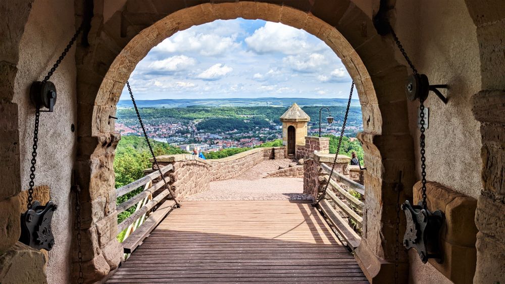 瓦尔特堡傲居山顶。始建于11世纪,距今有一千多年的历史了。它是德国的第一个UNESCO世界文化遗产城堡。如果你觉得路德維希二世的新天鹅堡才是最美的德国城堡,那么一件轶事将两个城堡联系起来。路德維希在游历法国和瓦尔特堡之后受到启发,才动了修建那座梦幻天鹅堡的念头。