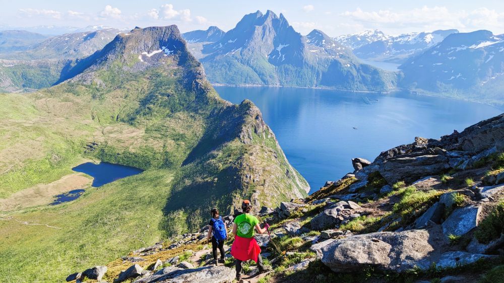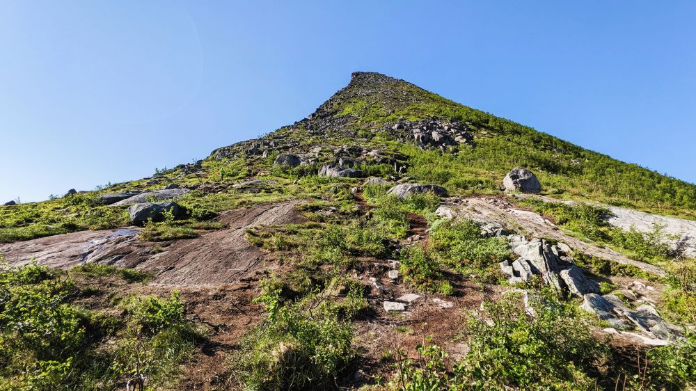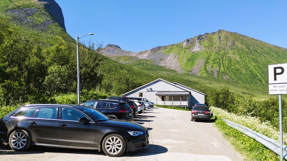 下午2点到达渔村Fjordgård附近,走步道 Segla hike,长度4公里,爬升429米。难度评级是RED,后半段是没有标识的陡峭石堆,很难走。