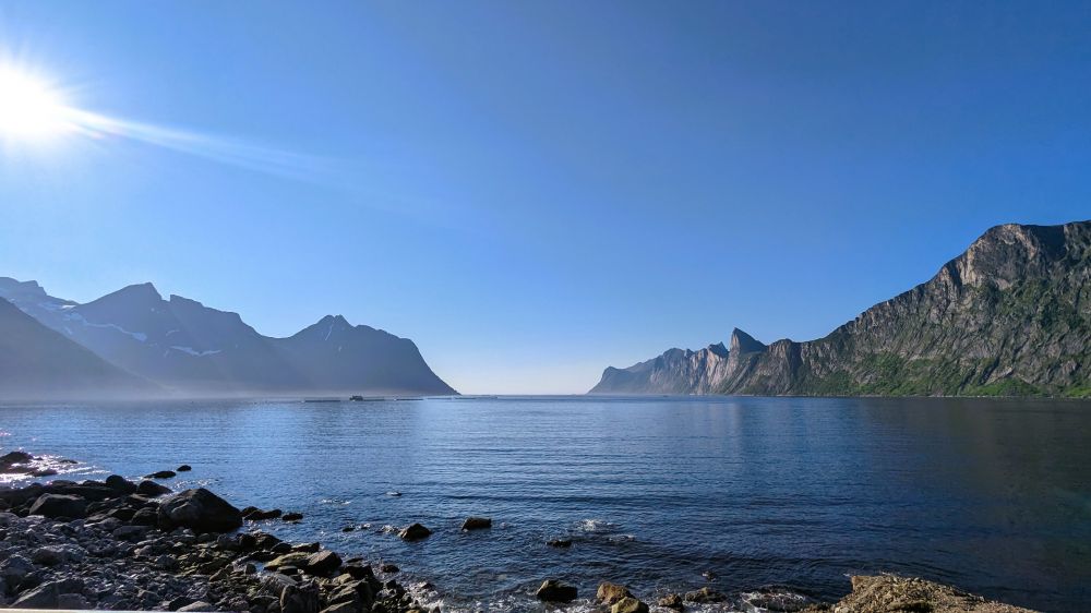 太喜欢这个世外桃源般的小岛了。如果天气好,本想第二天去走步道Hesten,或者继续沿着海岸线开到Tungeneset viewpoint,或者去看看小渔村Husoy。结果早上浓雾漫漫,能见度非常低,只好作罢。也曾探讨了一下乘坐载车轮渡从Gryllefjord到Andenes,再到我们的下一站罗弗敦,这样就不用走回头路了。最终放弃这个方案,是因为轮渡班次太少了,每天只有3到4次。