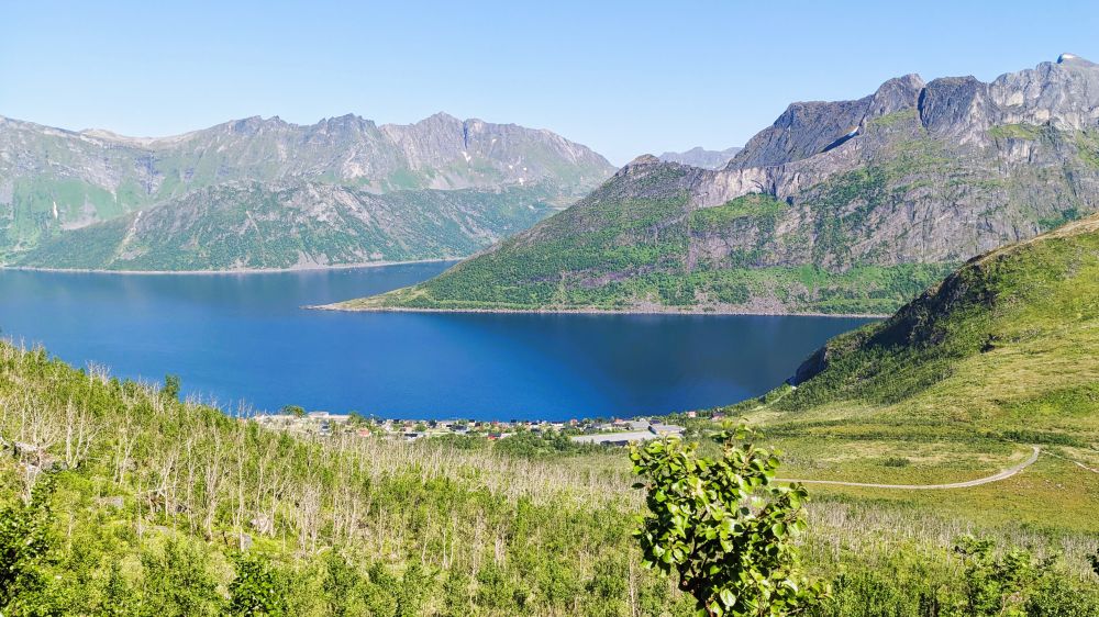 经过Finnsnes,这是个大港口,有很多轮渡航线在此停靠。它也是陆地这边的最后小镇,过了桥就是赛尼亚岛了。找了家泰餐馆Thaimatservice吃午饭,很好吃。