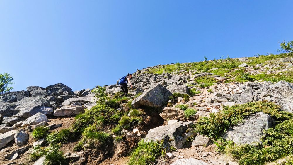 路越走越陡,在没有标识的乱石中陡峭攀爬,一度向上看不到顶,向下看不到来时的路。