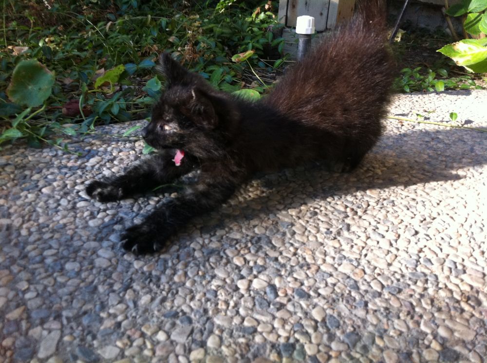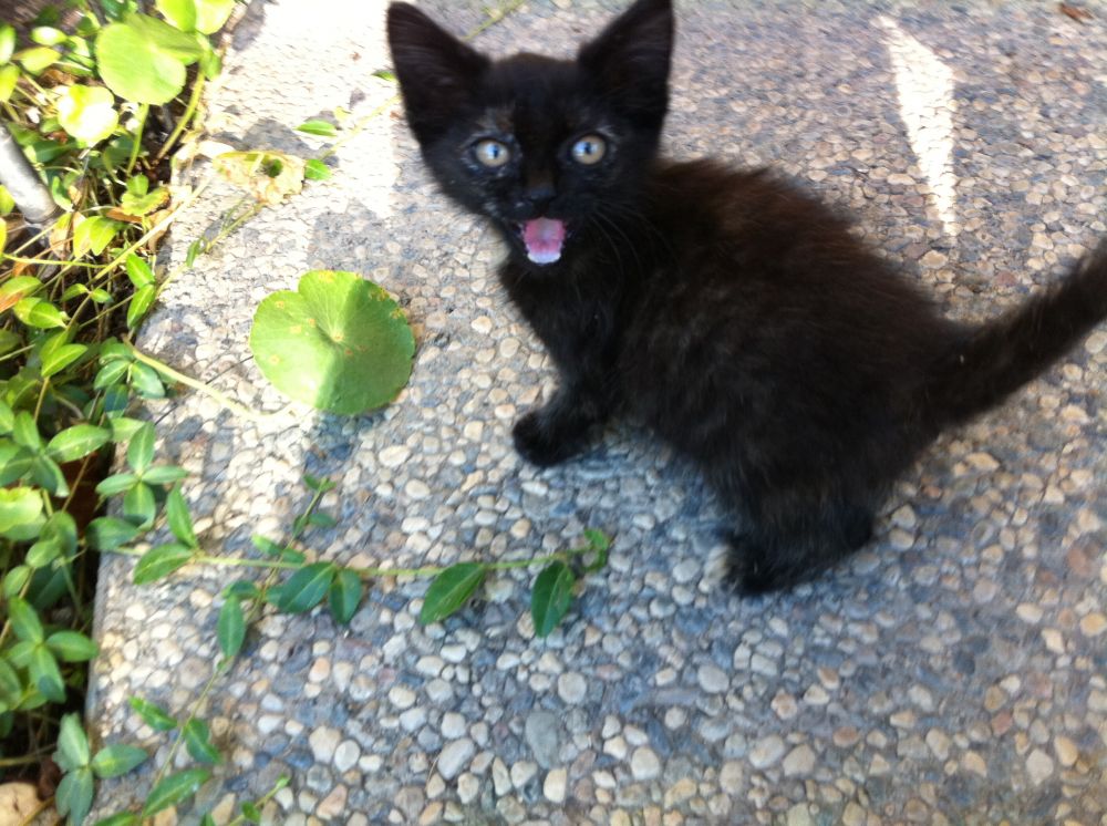 小奶猫黑黑的,跟已经往生的老黑小时候一个样,先生说就叫同样的名字吧。哈哈,看来我们跟黑猫有缘,大黑去了,小黑来了。小小黑,这就是你的家,快长快大,期待看到你变成肉球球:-)