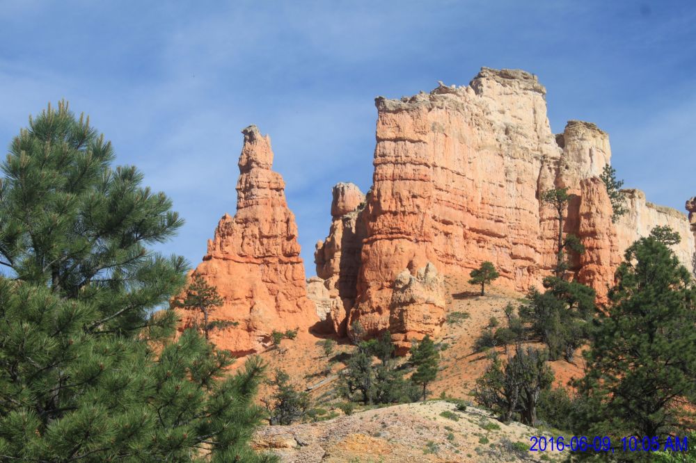 沿着边缘走了一点就离开了。这里的精华我们昨天已经看了。以后有机会就该好好走一些TRAIL,更多的体验大自然的神奇。出了公园沿12号公路,这些美丽的柱子又陪伴了我们一阵。