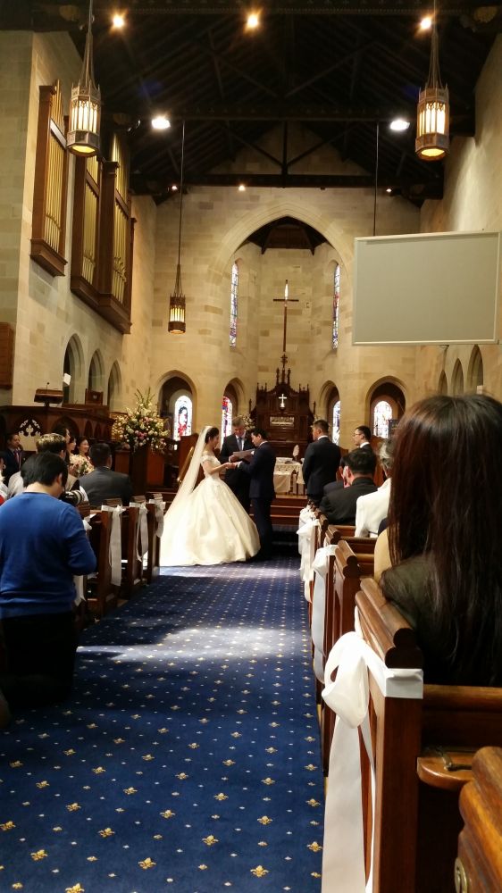 时值中国国庆,中秋双节佳期,我虽在南半球墨村也是好事连连,其中一件就是今天参加的闺蜜儿子的婚礼。爱主之人最蒙福,本来报有细雨的天气忽然间就转晴了。高尚区的教堂平日难找车位,一百五十人泊车竟然没有一人吃罚单。