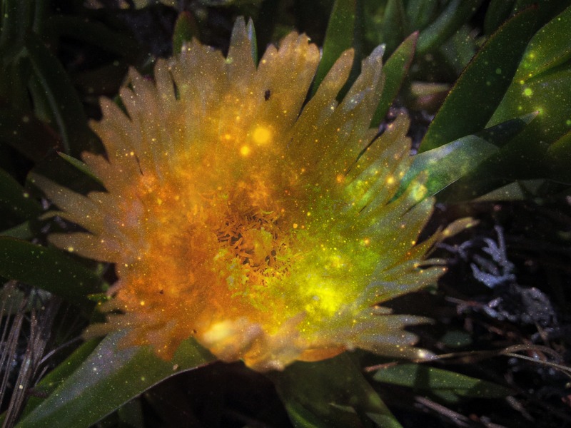 灯光下的花卉