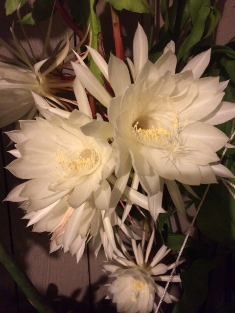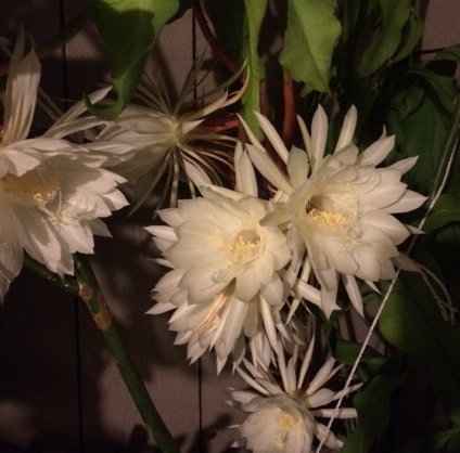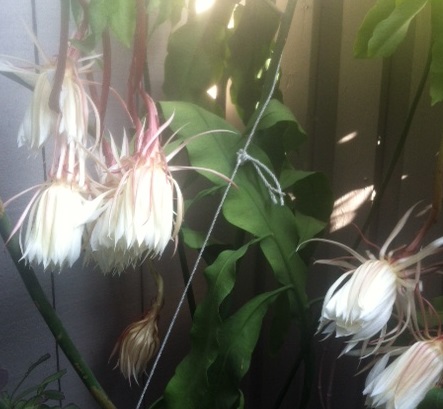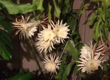 又到昙花开花的季节! 今年与去年一样, 又是同一 个晚上开了9 朵花,昙花在夜间绽放,洁白高雅,幽