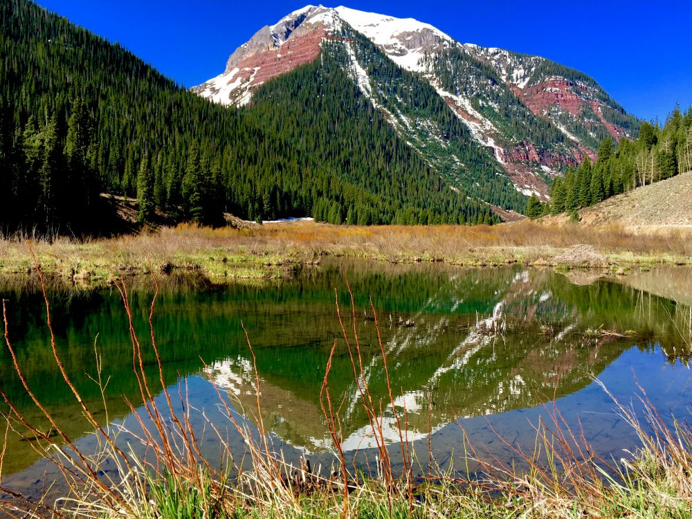 挂在山崖边的车路,险峻蜿蜒,一边是黑灰峭壁拔地怂天,一边是万丈峡谷,容不得半点驾驶偏差。这条路被称为百万美元的山景险途,一端是建筑色彩斑斓山城Silverton,另一端是温泉喷涌的山镇OURAY。它们被称作美国的小瑞士,深藏山谷,四面雪峰,冰湖点点;山湾沟壑,碧水长流;谷涧平原,郁郁葱葱; 木屋别墅,鳞次节比,真的是静美得冰雪清凉。