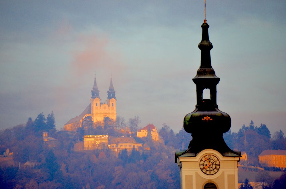 巴士穿过林芝的高速公路之时,阿尔卑斯山披着白雪一直美美地站在路的那边,逗得我心里痒痒的,真想下车到山上去徒步呀。导游轻轻地带过:林芝是奥地利的钢都和第三大经济城,曾经污染得吓人大概是在红区吧(100以上),后来市政府下决心改变,现在它的污染指标是在绿色区(20一下)。但是代价是工厂的搬移分散,钢都的失业率和人口下降。导游不愿意多谈林芝和一切和希特勒有关的东西,即使客人提起,她也只是淡淡的带过。