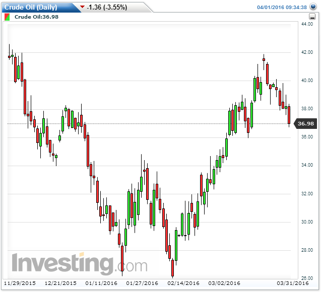 刚刚说完大家内心对此轮油价反弹三心二意(一季股市回顾),油价又跌了不少:
