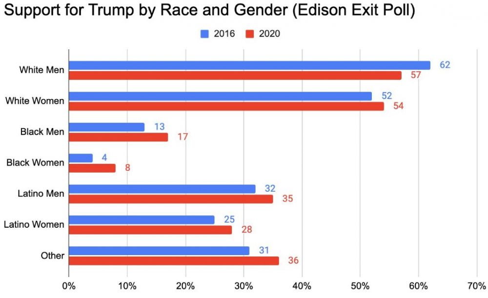 第五,这次选举更多的少数族人支持川普,川普白人至上、种族歧视、重男轻女、歧视外族和各种无耻行为,并没有排斥大家,觉得不能接受,从另一个方面反映了民主党真的不得人心。