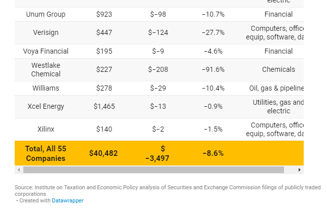 即使是有企业税,美国企业合法逃避交税的企业不少,2020年55家企业不但分文不交,还拿到政府的倒贴,如最近陷入新疆棉花风波的耐克【13,14】:
