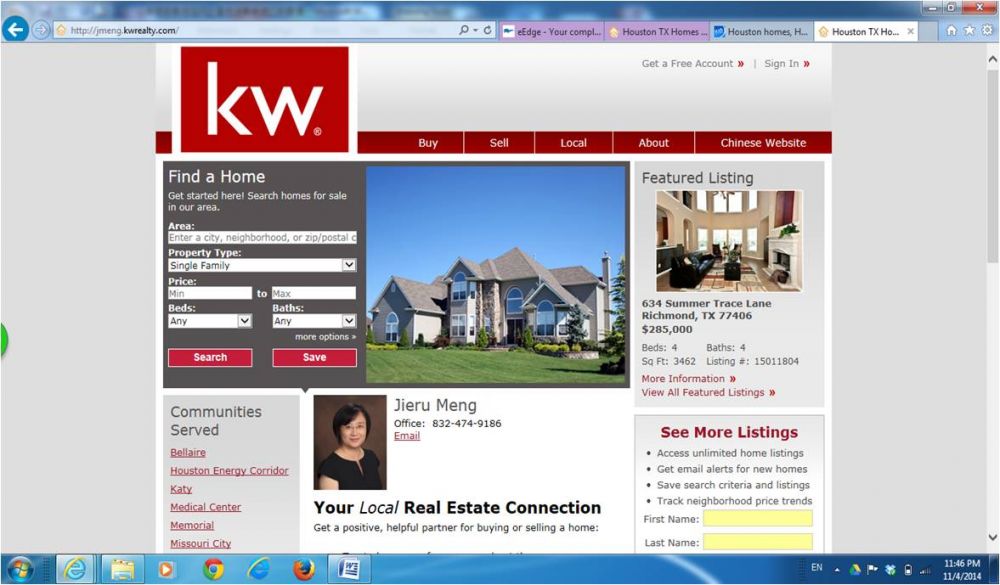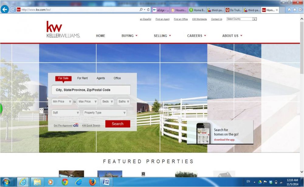 2. Broker/Agent网站。 有许多房地产经纪人公司以及Realtor的个人网站也提供房源搜索。比如想在Keller Williams 网站上搜索房源,只要输入“www.kw.com”进入网站就可以。