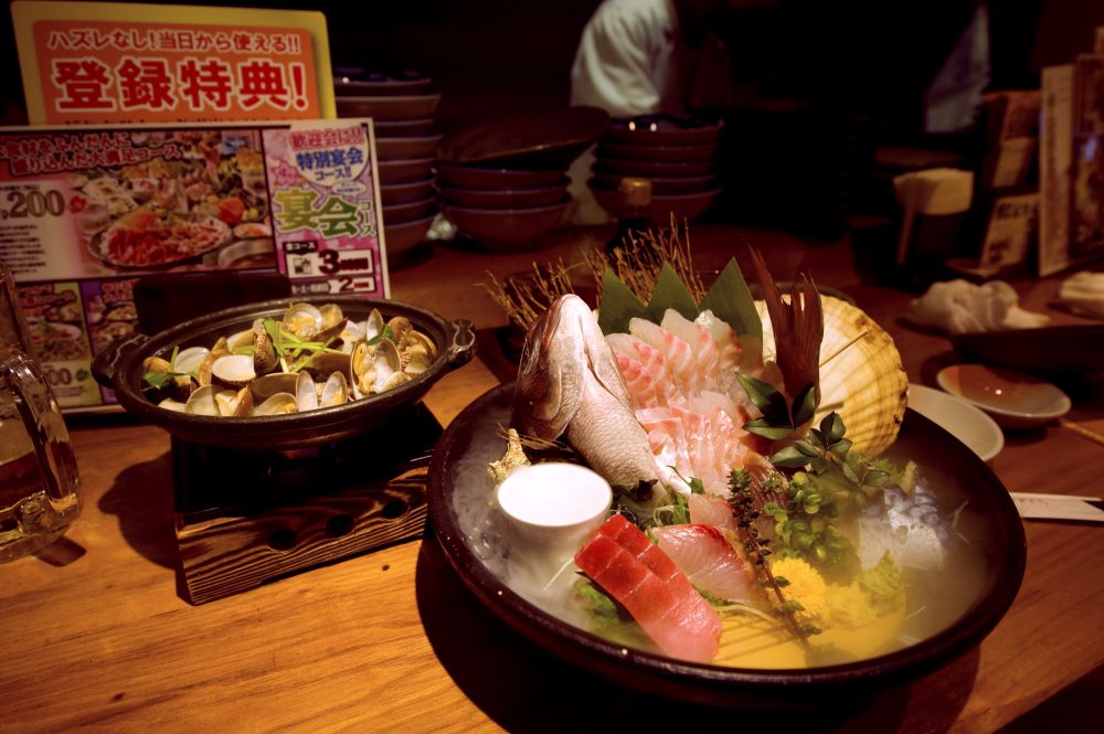 札幌的海鲜餐馆 - 菜单,对面日本人对饮