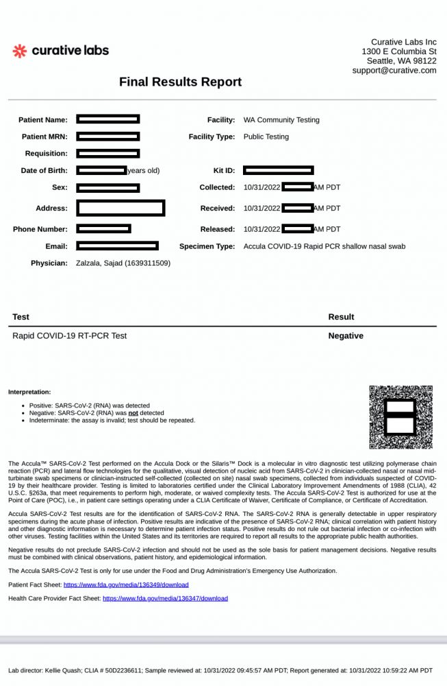 当天下午5:23PM,结果就出来了,不到8小时。阴性!