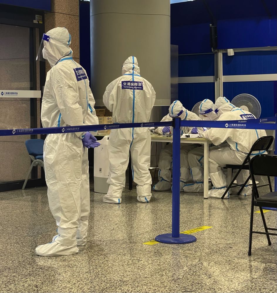 走出检测采样的平房,还要回到航站大楼,同样走过曲折往复的通道,来到边境检查大厅。这是一个非常熟悉的地方,每次从上海入境都会在这里排队很长时间,不管是中国公民的队伍,还是外国人的队伍,几十个通道,开足马力,整个大厅人头攒动,世界各地的乘客,航班一个接一个,一批接一批,蜂拥来到这里等待过关。可是今天,这里只有我们一个航班的乘客,两百多人进到这样的空间,就像消失了一样。我到达外国人入境的队伍时,只有五个旅客排队,有两个检查窗口。本以为可以很快通过,没想到却等了十几分钟,边检人员问了很多问题,也许他们想“在这个时候还来中国,到底想干什么?”。