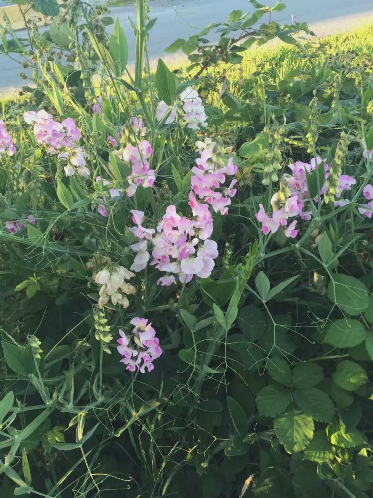 豌豆苗有一年生和多年生的。懒人自然要选多年生的豌豆苗。它不容易有病虫害,只需粗放管理就行了。温哥华的春天雨水又多,我连浇水的功夫都省了,就能葱葱郁郁地长出一片。而且豌豆苗在北美大有归化的趋势,一到春天和夏天,野地里一片茂盛的豌豆苗,一路匍匐着蜿蜒前进,紫红色和粉红色的花朵迎风招展,姿态撩人,似空谷里盛开的兰花。一不小心,就被路过的人们认成野生的兰花。