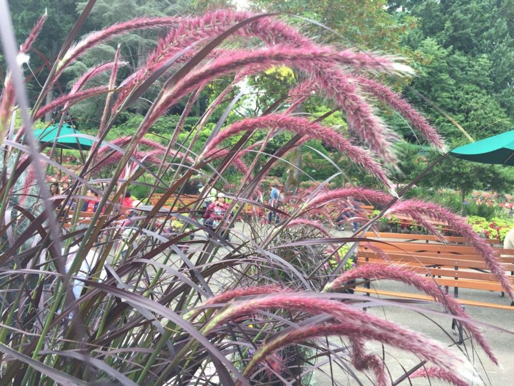 寻不到成片的狗尾草的我,倒是在温哥华的各种花园里经常见到零星的狼尾草,西人称其为喷泉草(fountain grass), 外表酷似紫色尾巴的大号狗尾草。