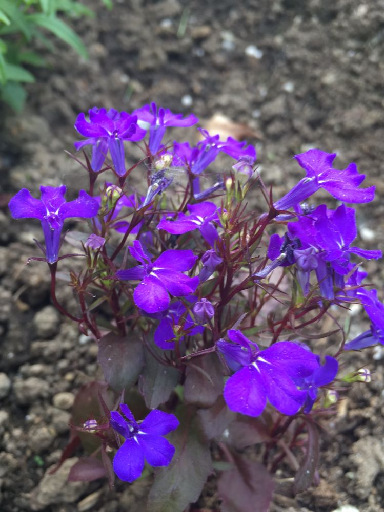 原生于热带和亚热带地区的多年生翠蝶花在温哥华地区只能做一年生花卉栽培,北美的园艺师们又将新大陆的两种多年生的半边莲属野花引进了花园。其中一种是红衣主教花(Cardinal flower ,学名Lobelia cardinalis), 以艳丽的猩红色花穗而得名。另一种是大蓝山梗菜(Great blue lobelia ,学名Lobelia siphilitica), 茎顶的蓝紫色花朵组成密集的穗状花序。这两种野花杂交,又产生了花期更长、花色多样的夏花(Lobelia ×speciosa)。