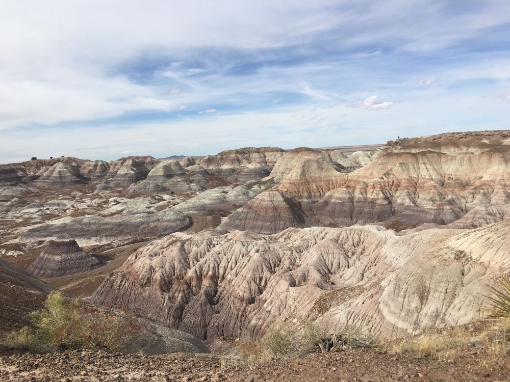 沿着环绕蓝坪台地的公路从头到尾开过去,大约3.5英里的车程,一路风景美得令人窒息。你可以见到诸多石化了的木头,历经数百万年遭风雨不断侵蚀而形成的恶地(badland),平顶山(mesa),孤丘(butte)和绚丽的多彩沙漠(painted desert, 位於大峽谷的西边,有一部份在石化林国家公园中)。