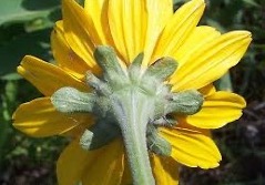 五:观种籽的外壳(Chaff ):葵花属种籽外壳宽,包住瘦果,赛菊芋属的种籽外壳是线性披针形的。