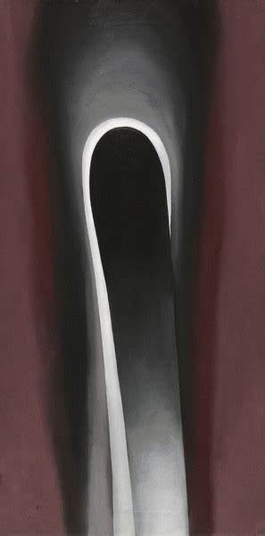 在六号作品中,乔治亚进行了新的尝试,在黑色和棕色的背景里融入了一丝蓝色和红色,这幅画是雄蕊的极端特写。雄蕊太大了,观众们只能自行脑补画布外的整朵花是什么样的。